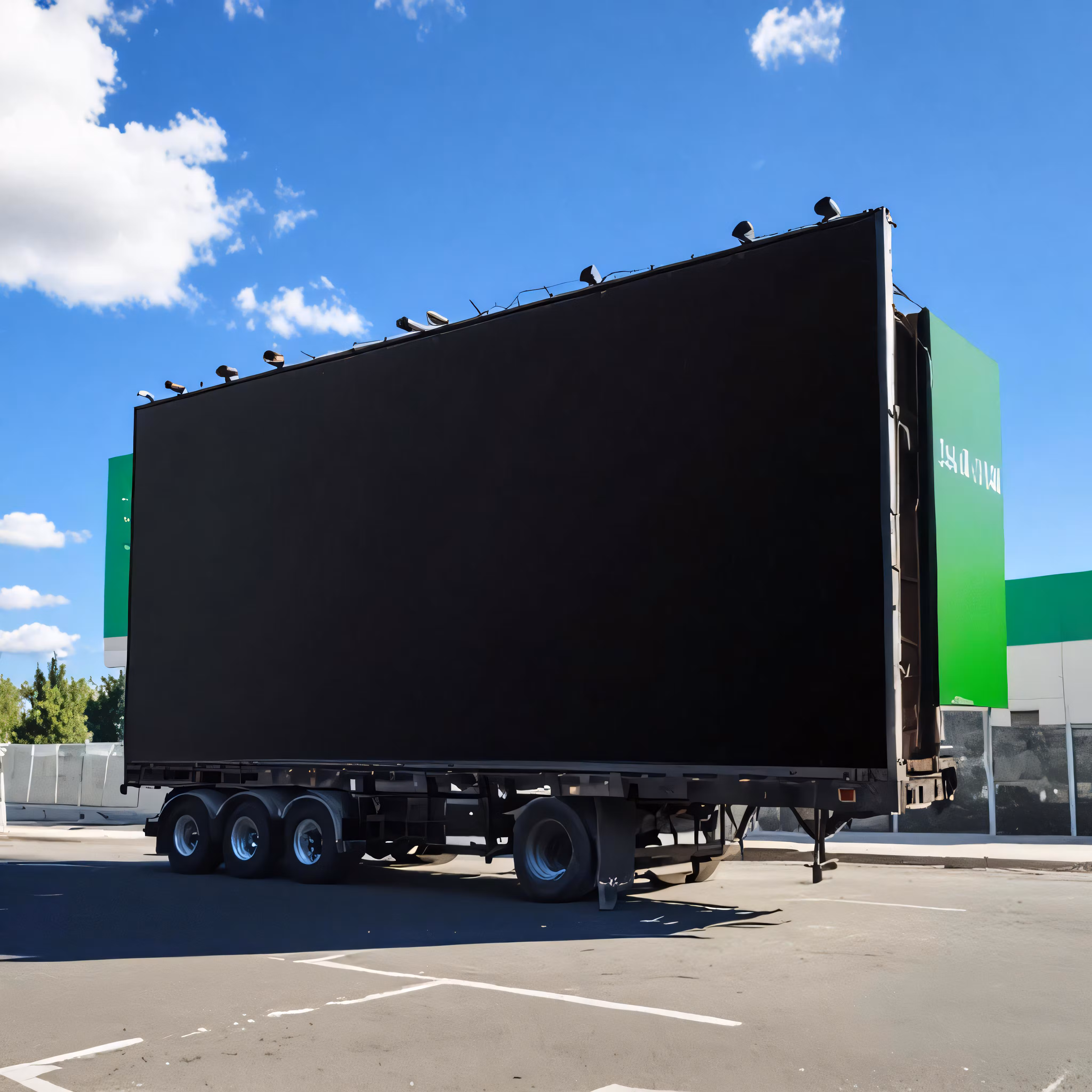 High resolution picture, free to use, a black truck parked on the street under a blue cloudy sky