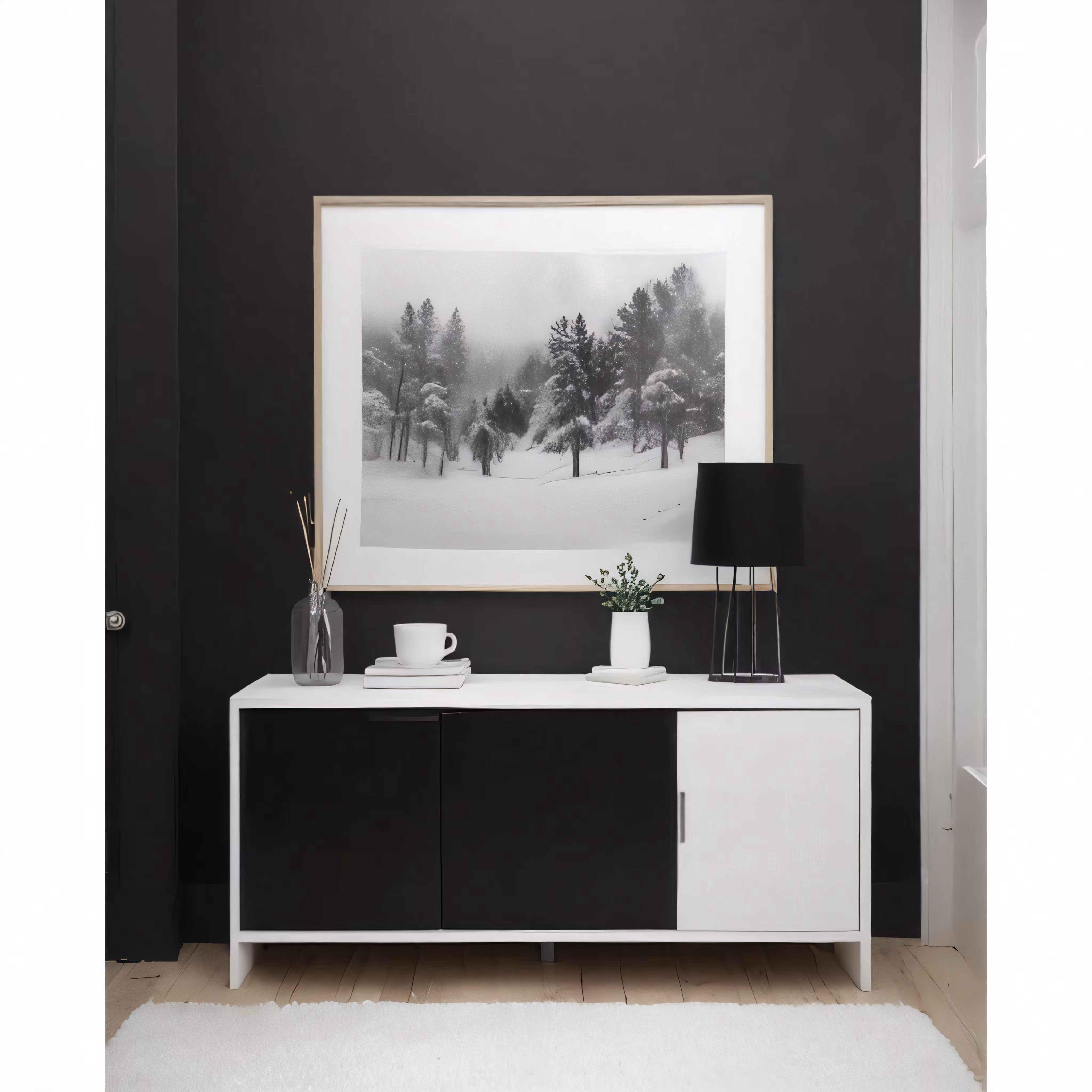 High resolution picture, free to use, a black wall with a black and white painting in it