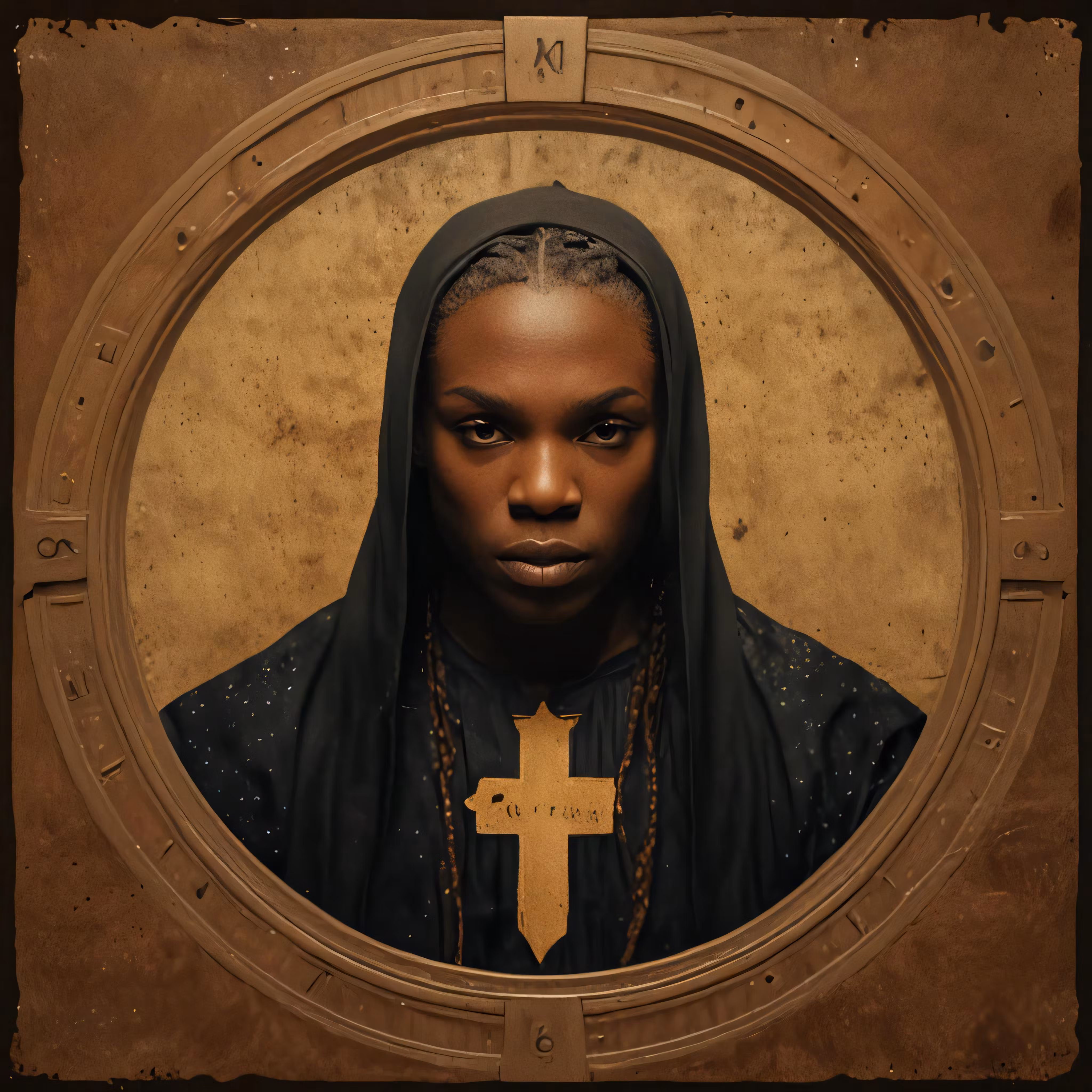 High resolution picture, free to use, a black woman in a nun suit and hood is wearing a cross on her head