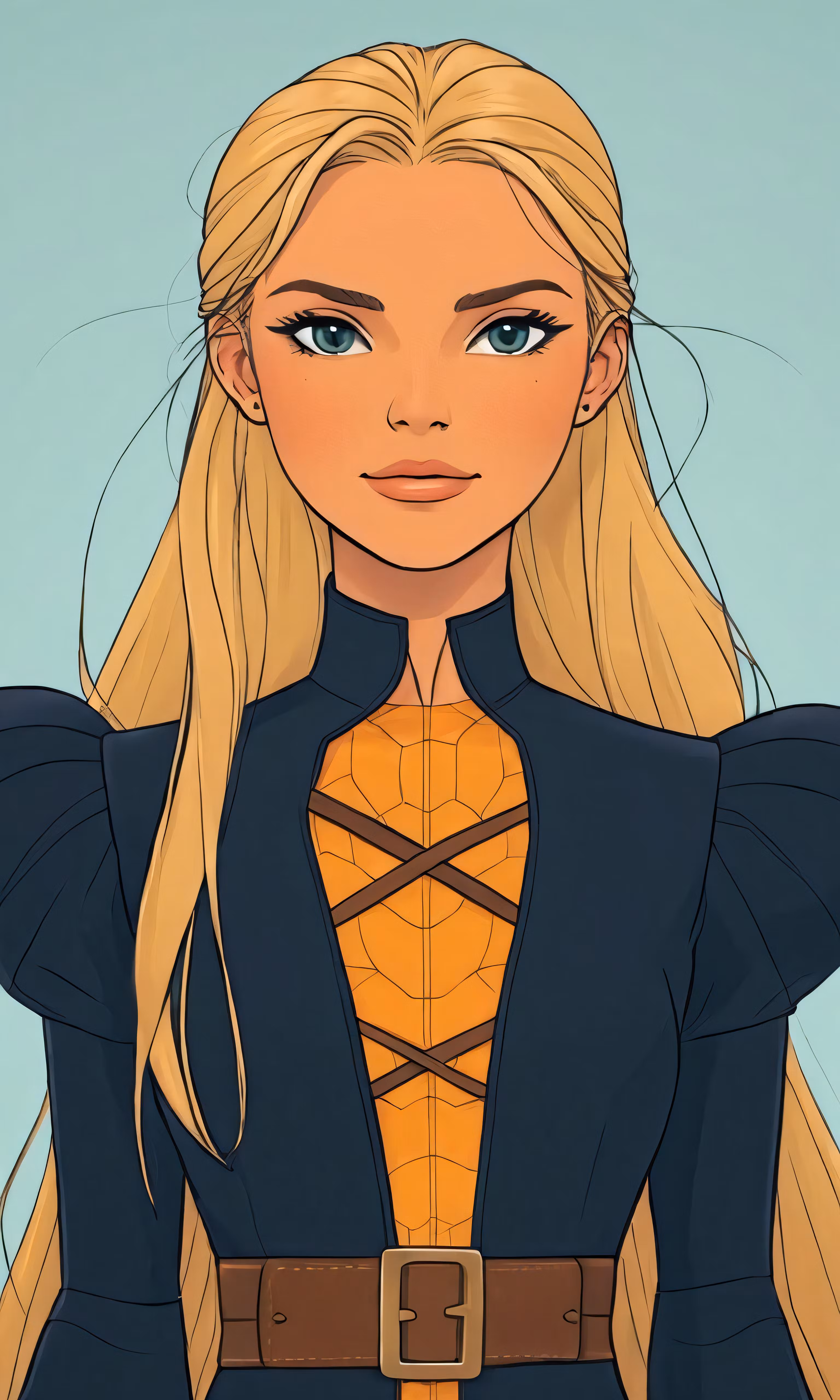 High resolution picture, free to use, a blonde haired woman with braids and a blue dress