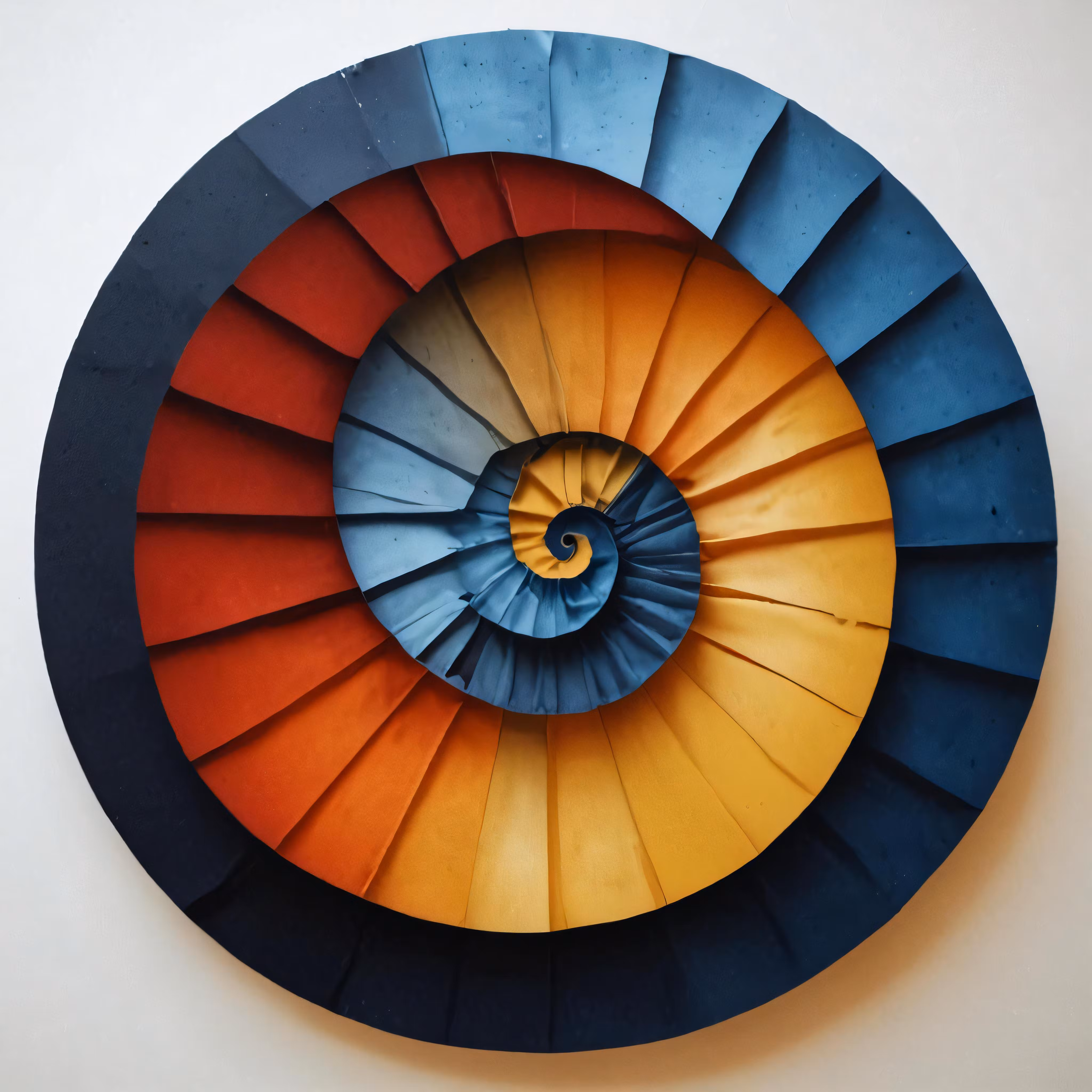 High resolution picture, free to use, a blue, red, and orange spiral shape is featured on a wall