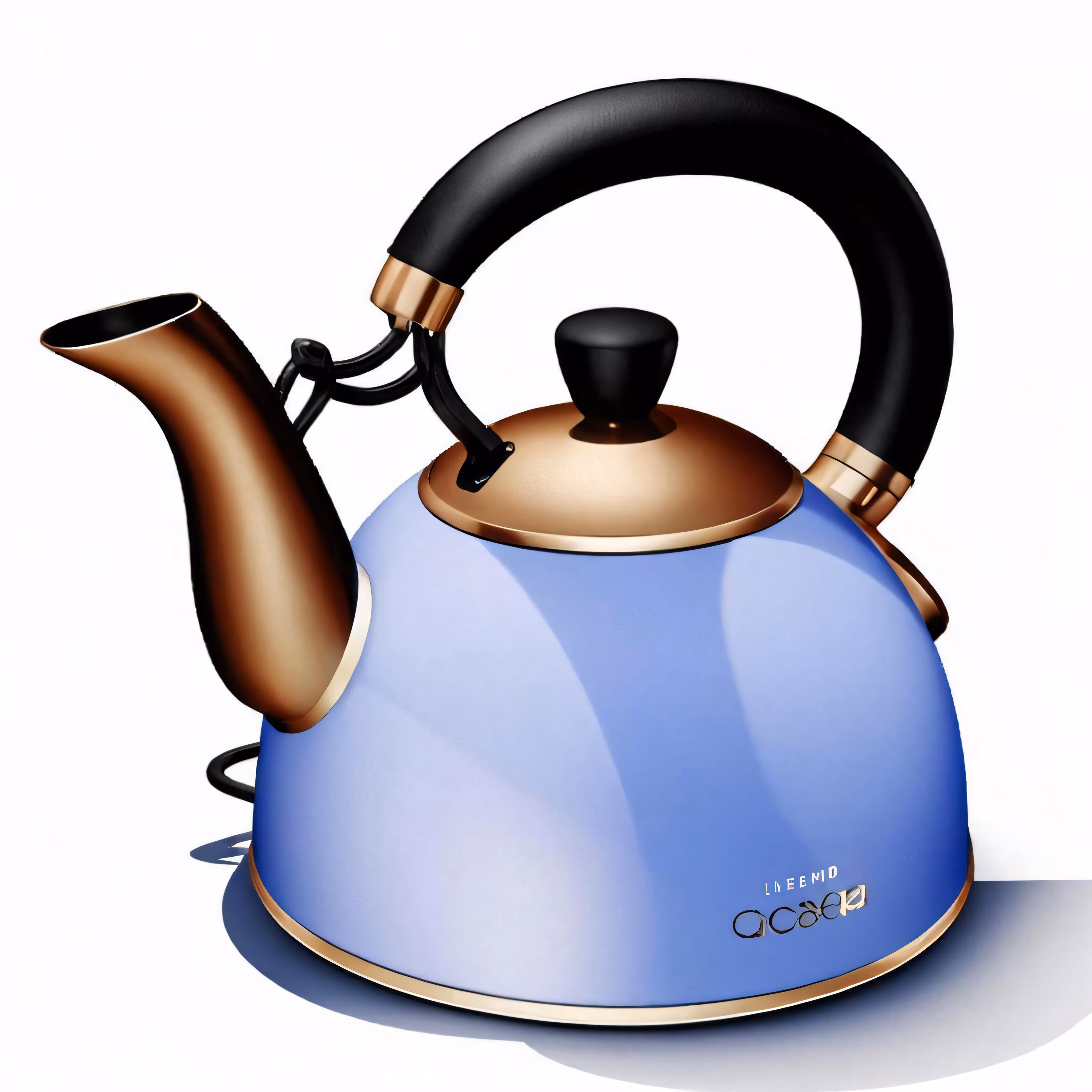 High resolution picture, free to use, a blue and gold tea kettle on white background