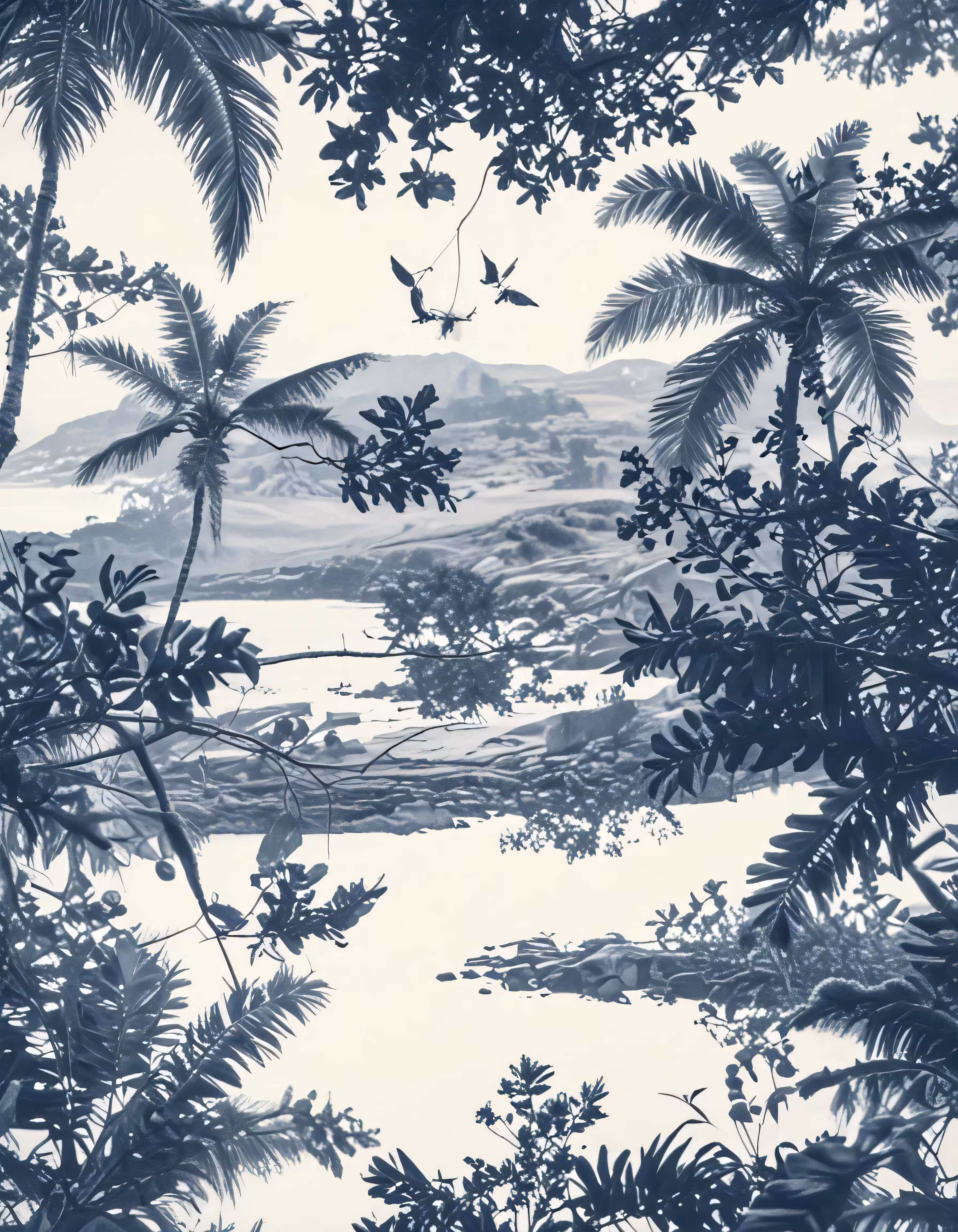 High resolution picture, free to use, a blue and white photograph of a lagoon