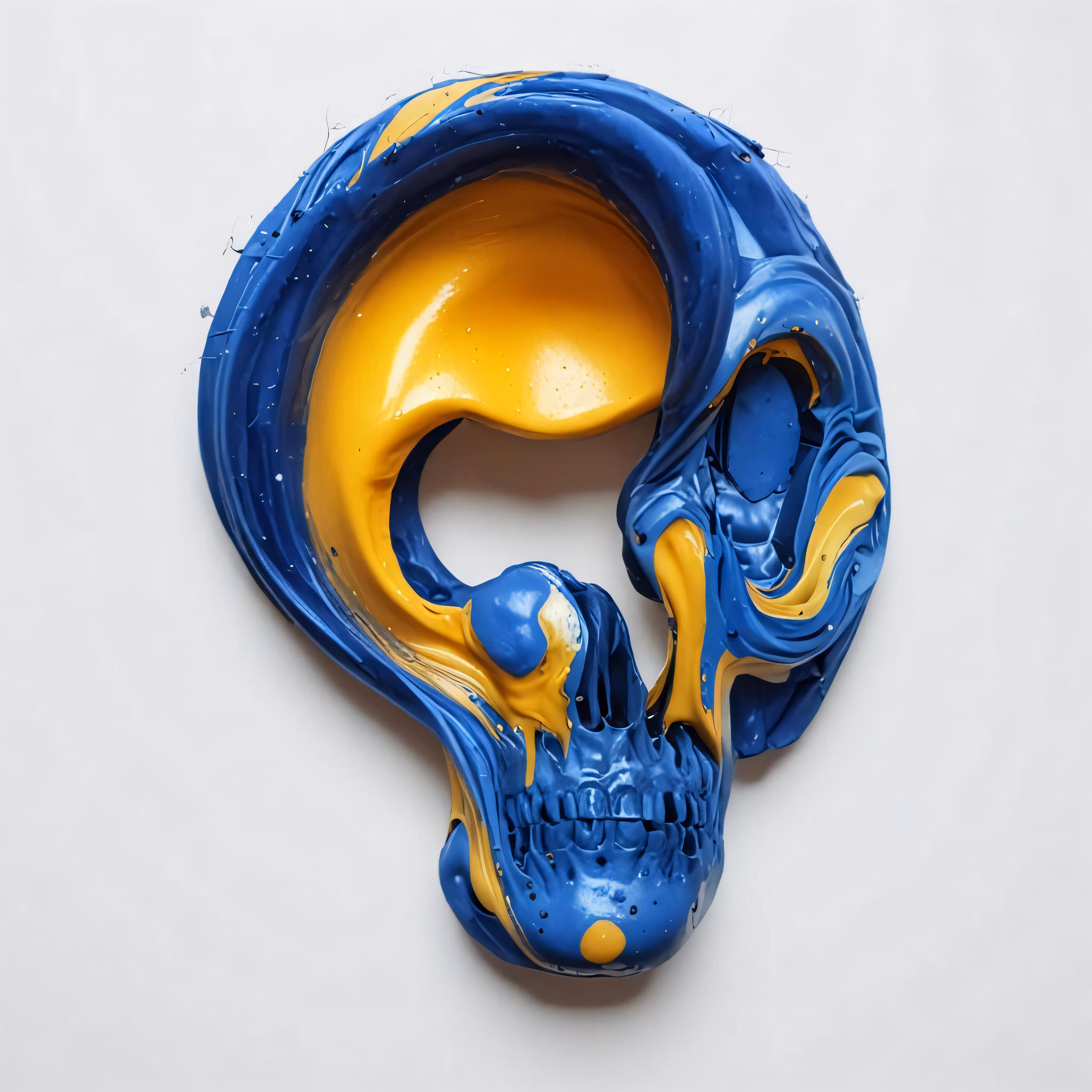 High resolution picture, free to use, a blue and yellow skull mask sitting on top of a white surface