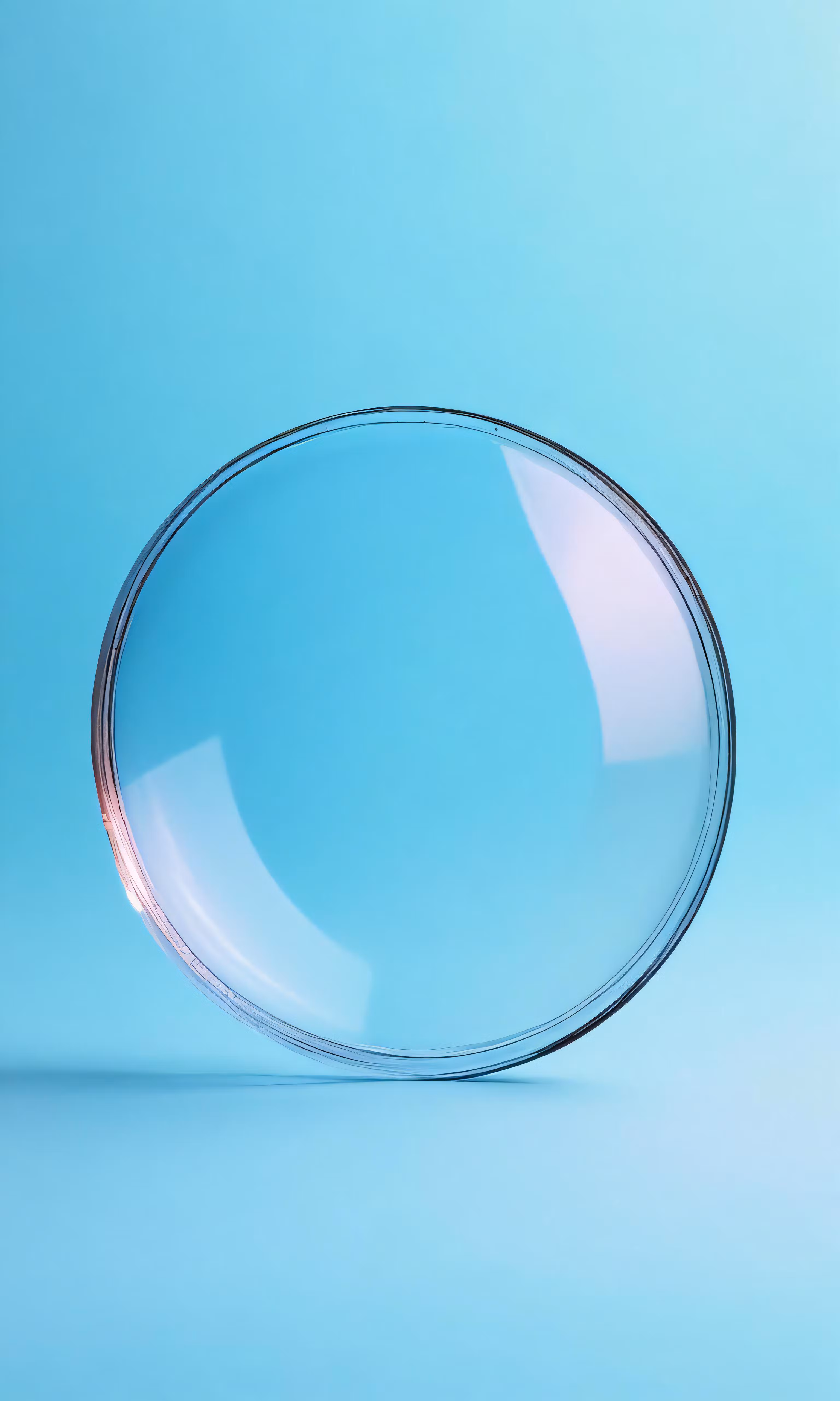 High resolution picture, free to use, a blue background has a thin round, glass dish on it