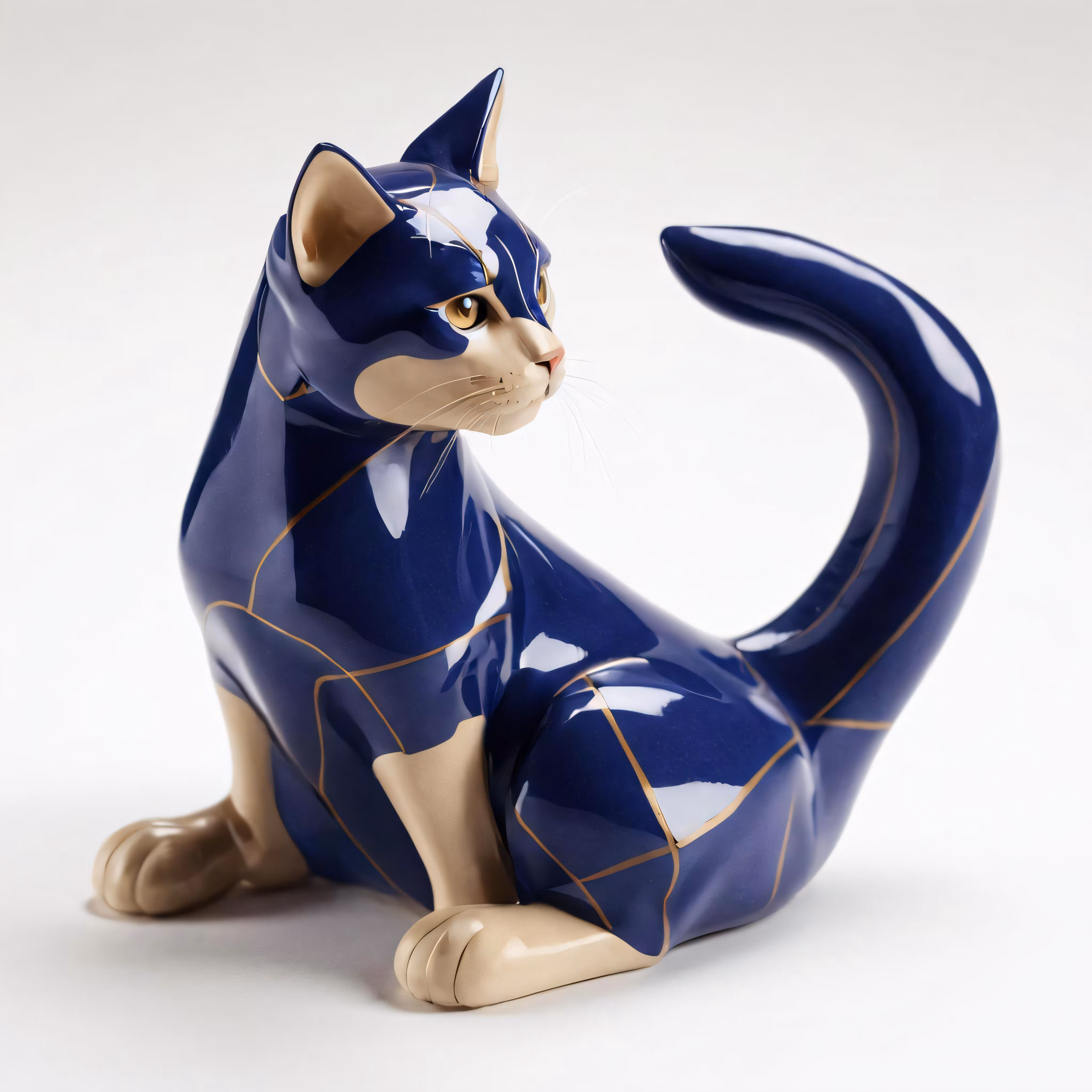 High resolution picture, free to use, a blue cat figurine on the floor next to white background