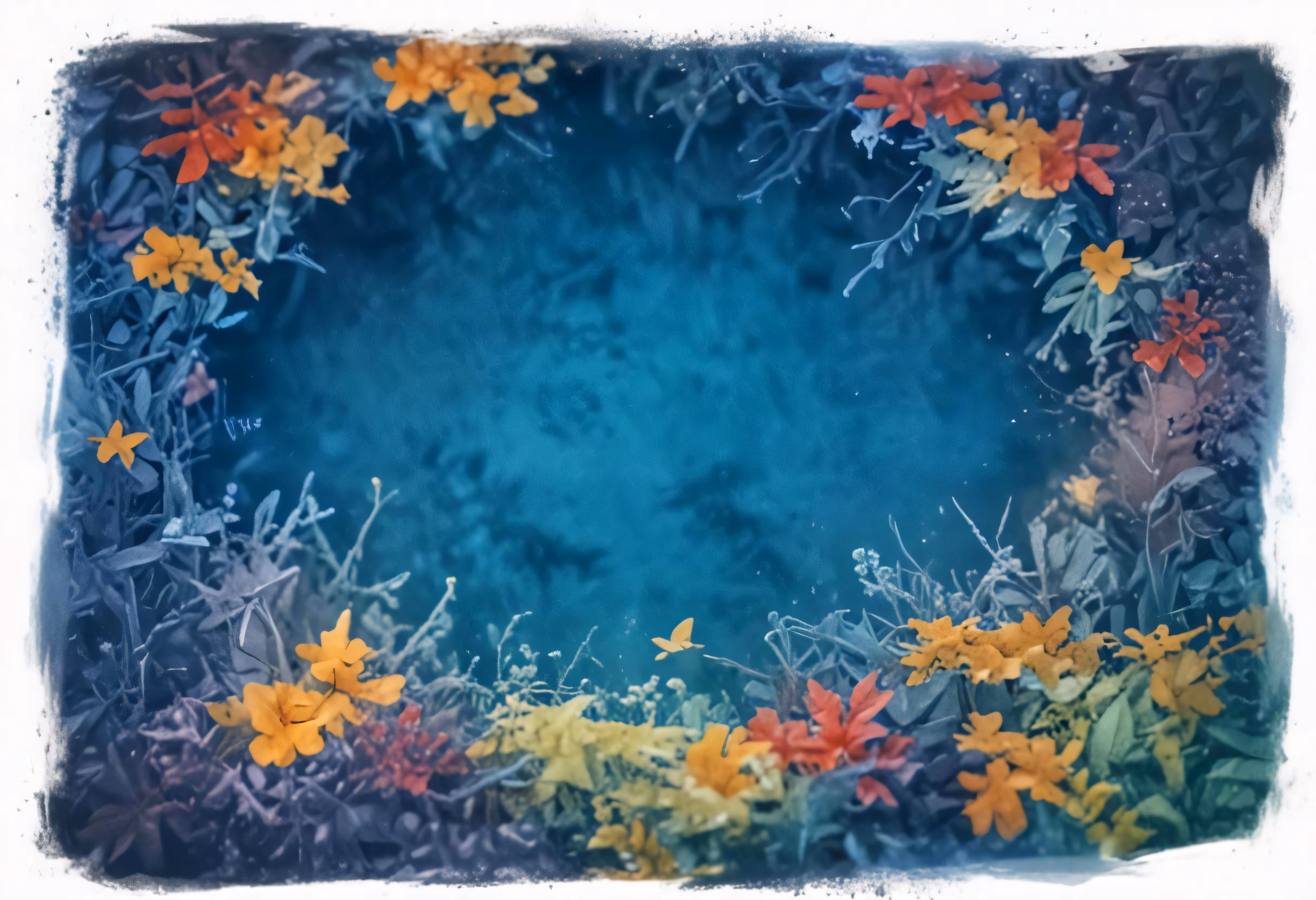 High resolution picture, free to use, a blue circular is surrounded by red and yellow flowers