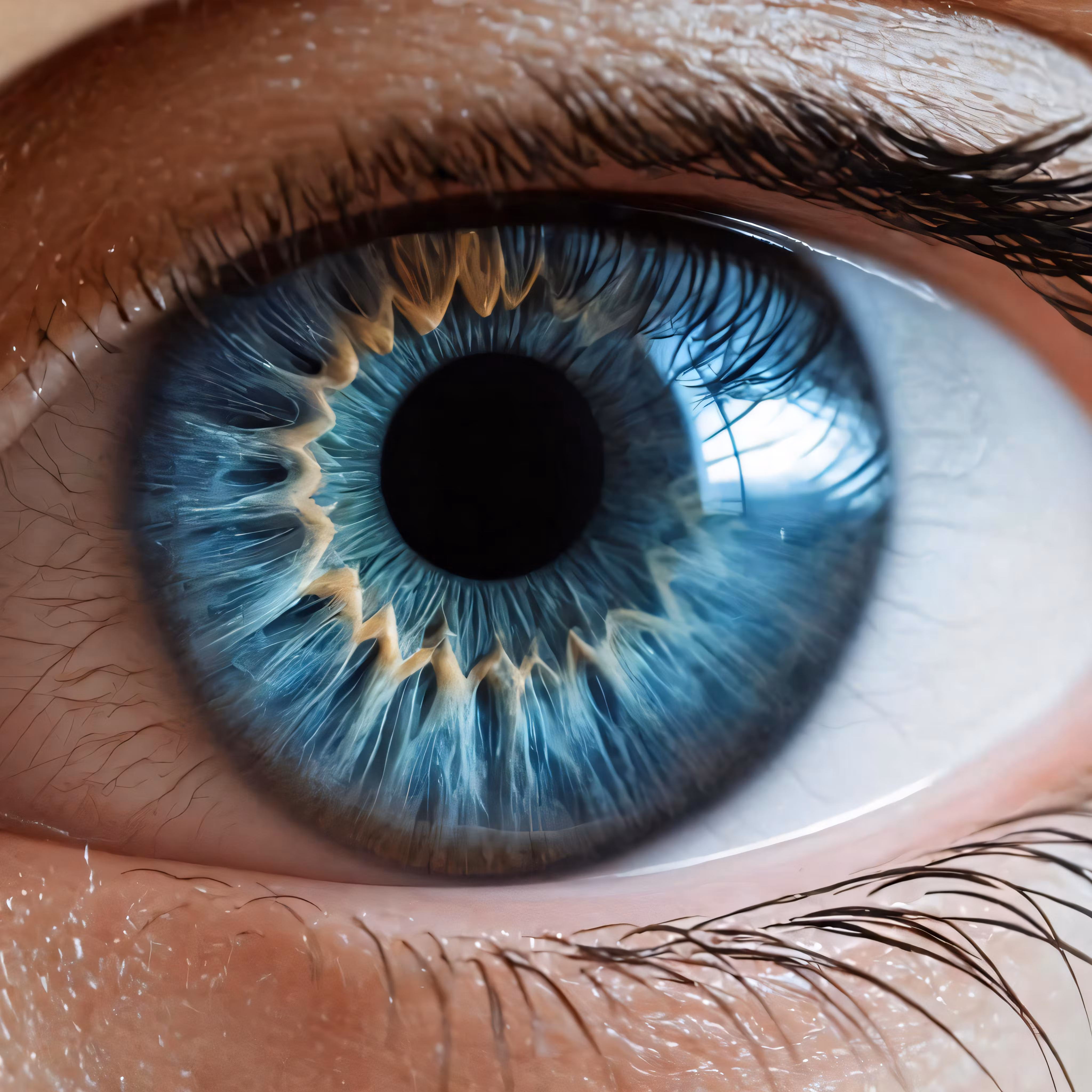 High resolution picture, free to use, a blue eye with a black iris is seen