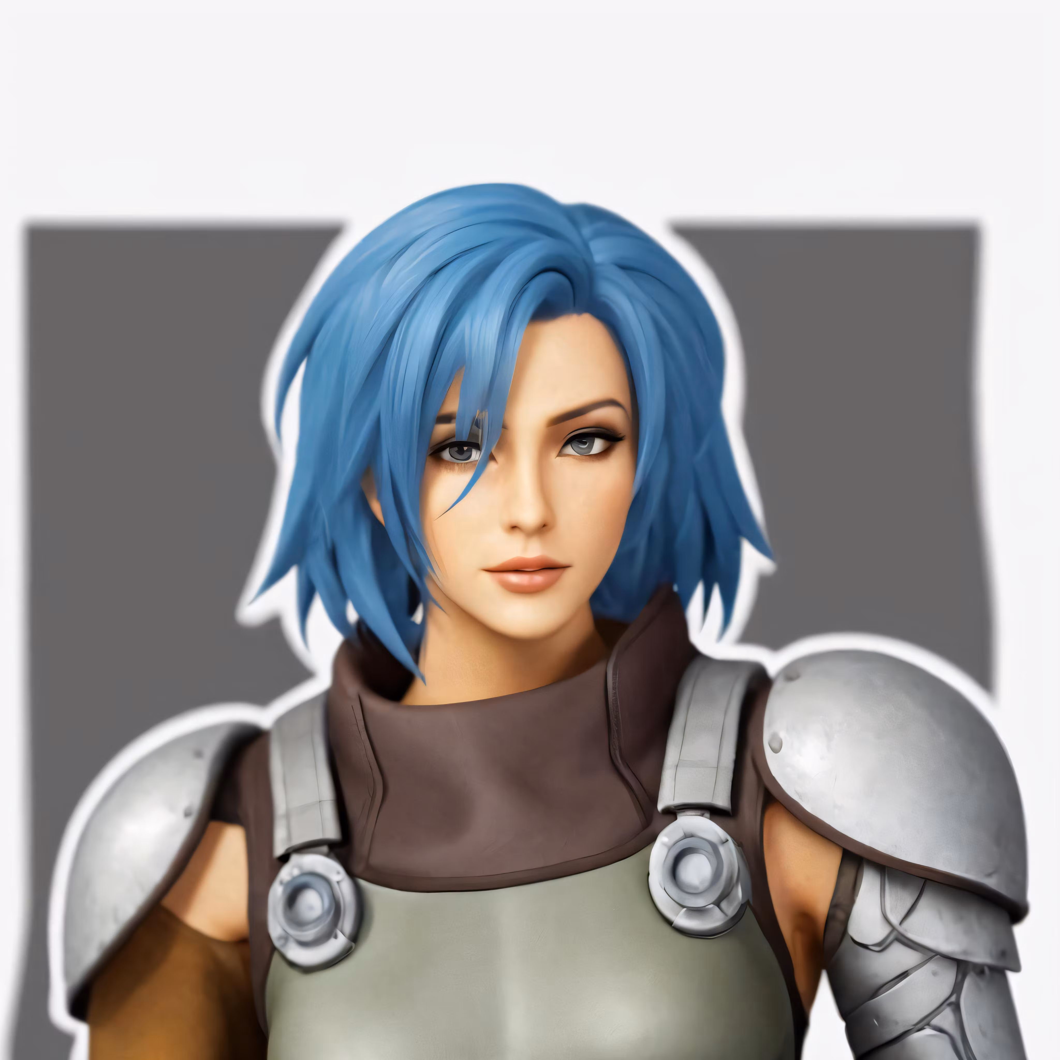 High resolution picture, free to use, a blue haired girl wearing armor and a blue shirt