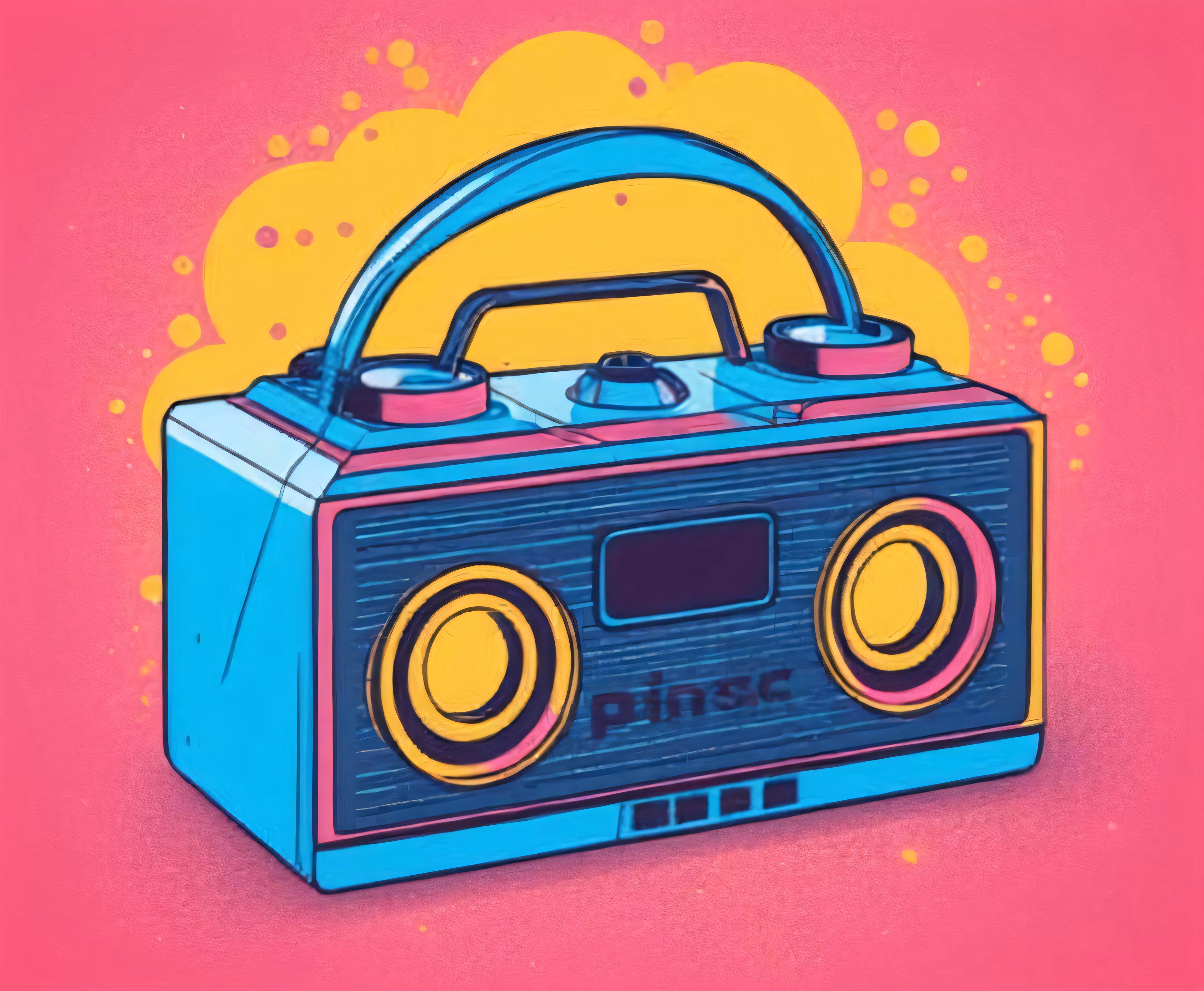 High resolution picture, free to use, a blue radio on top of a pink background