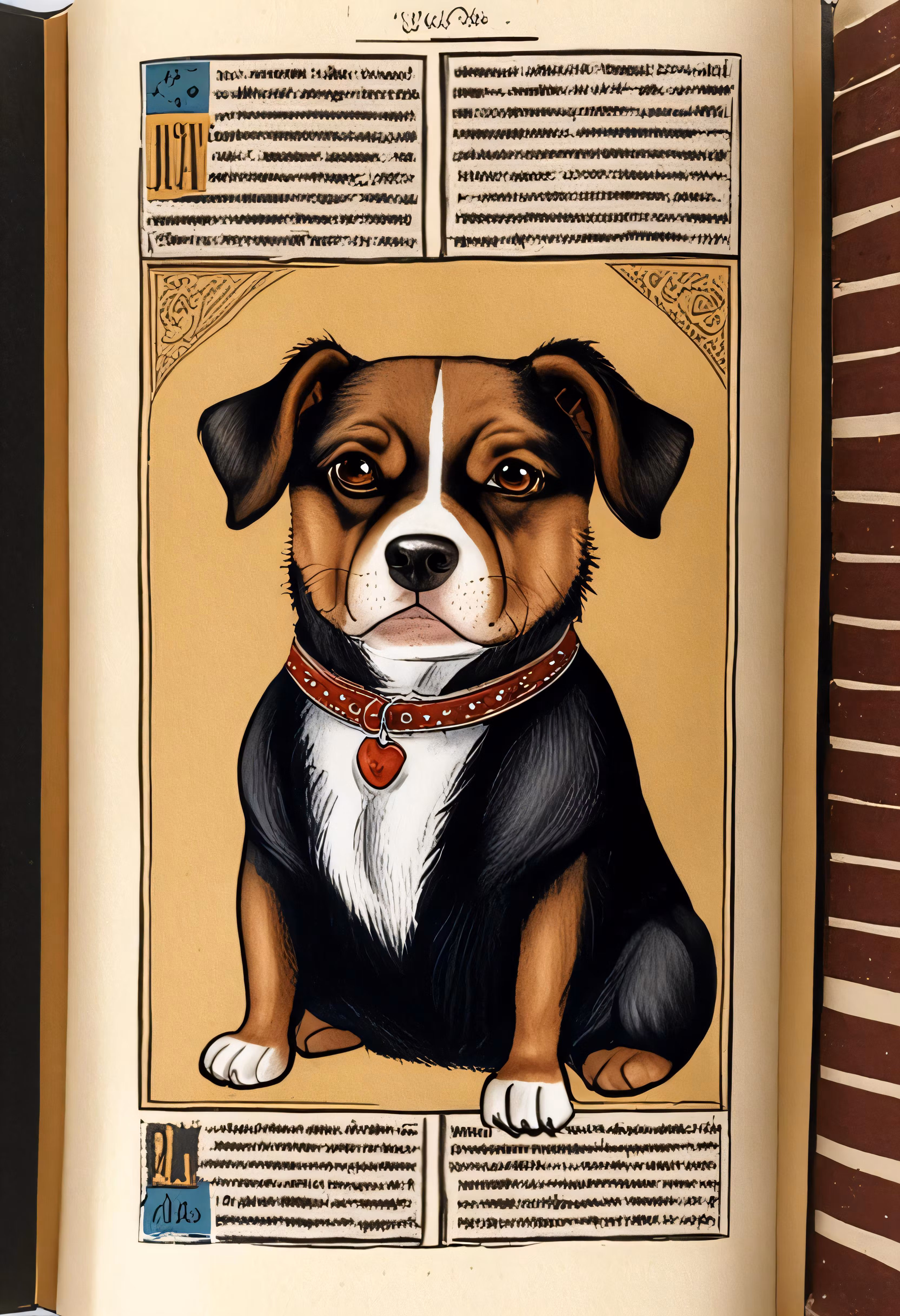High resolution picture, free to use, a book with a painting of a puppy in the middle