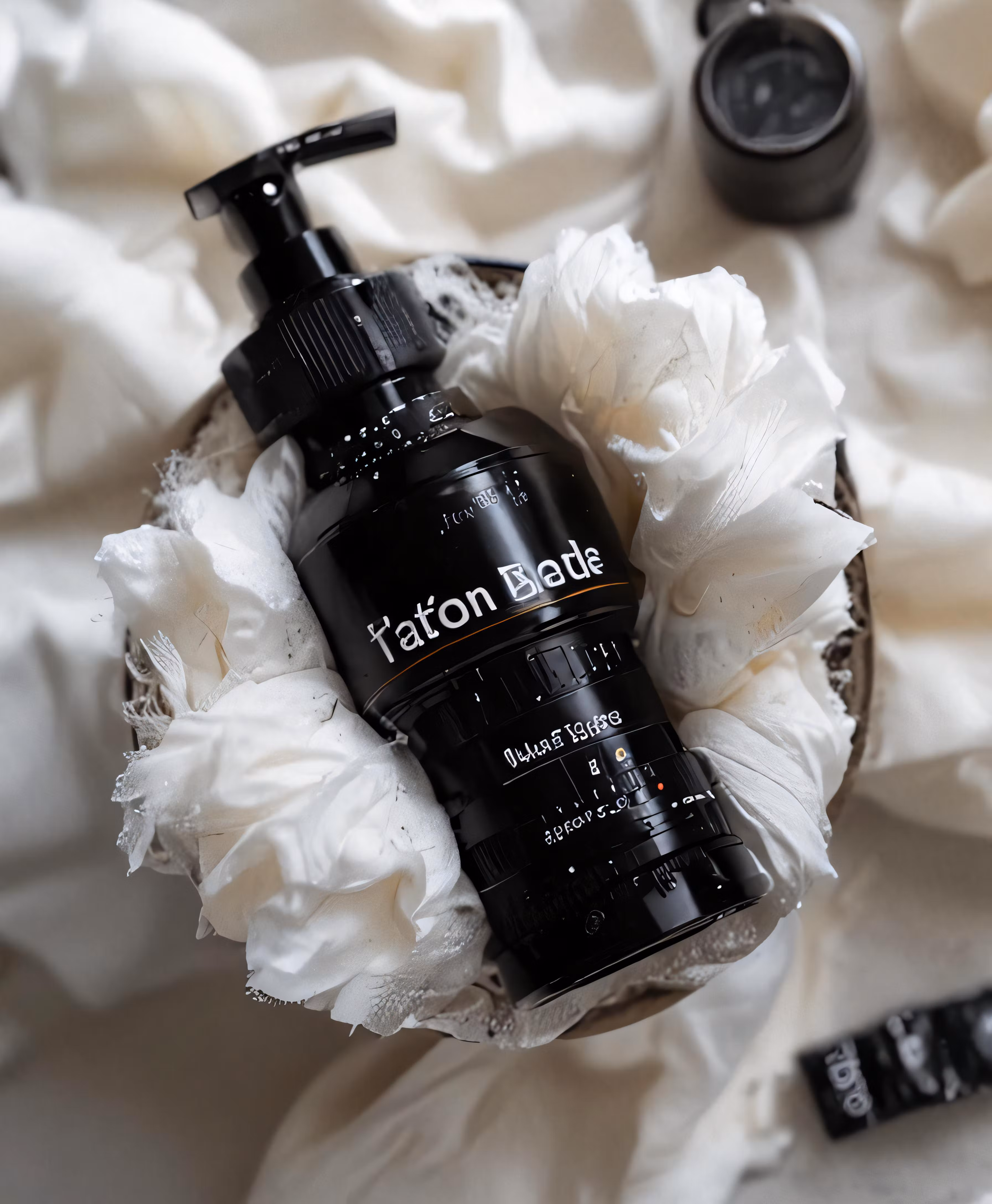High resolution picture, free to use, a bottle of lotion is sitting on a bed next to scissors