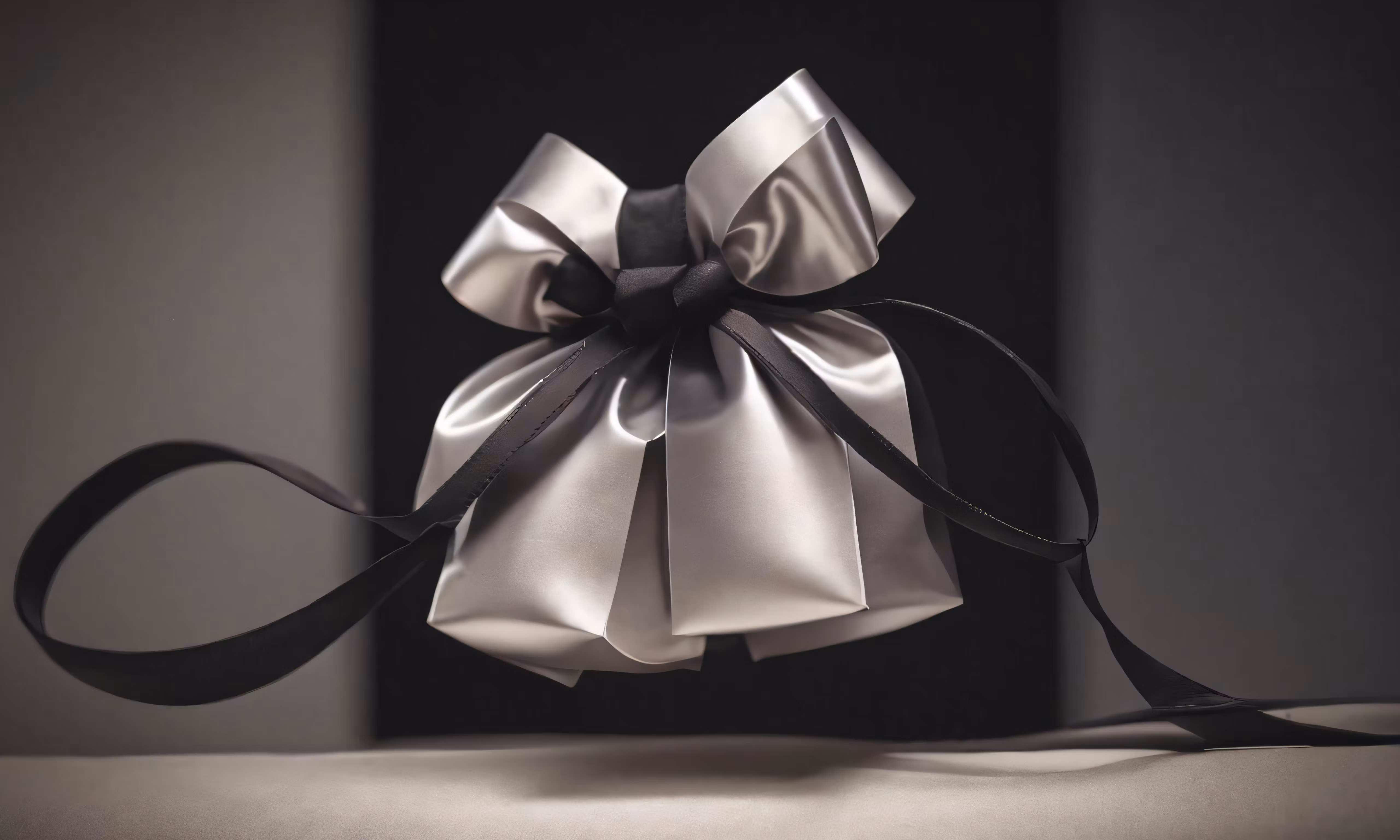 High resolution picture, free to use, a bow on the back of a black and white object