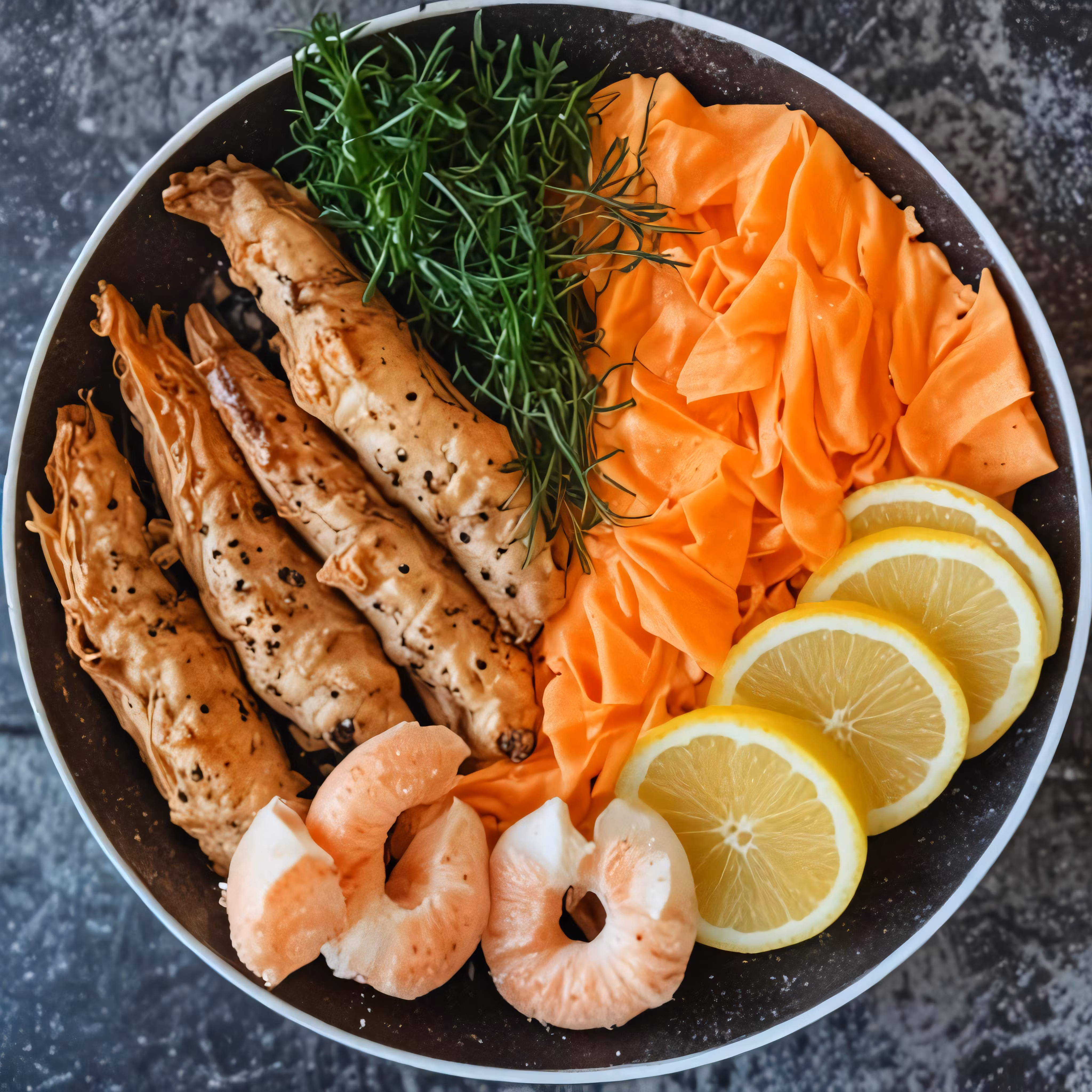 High resolution picture, free to use, a bowl filled with meat, fruit and vegetables