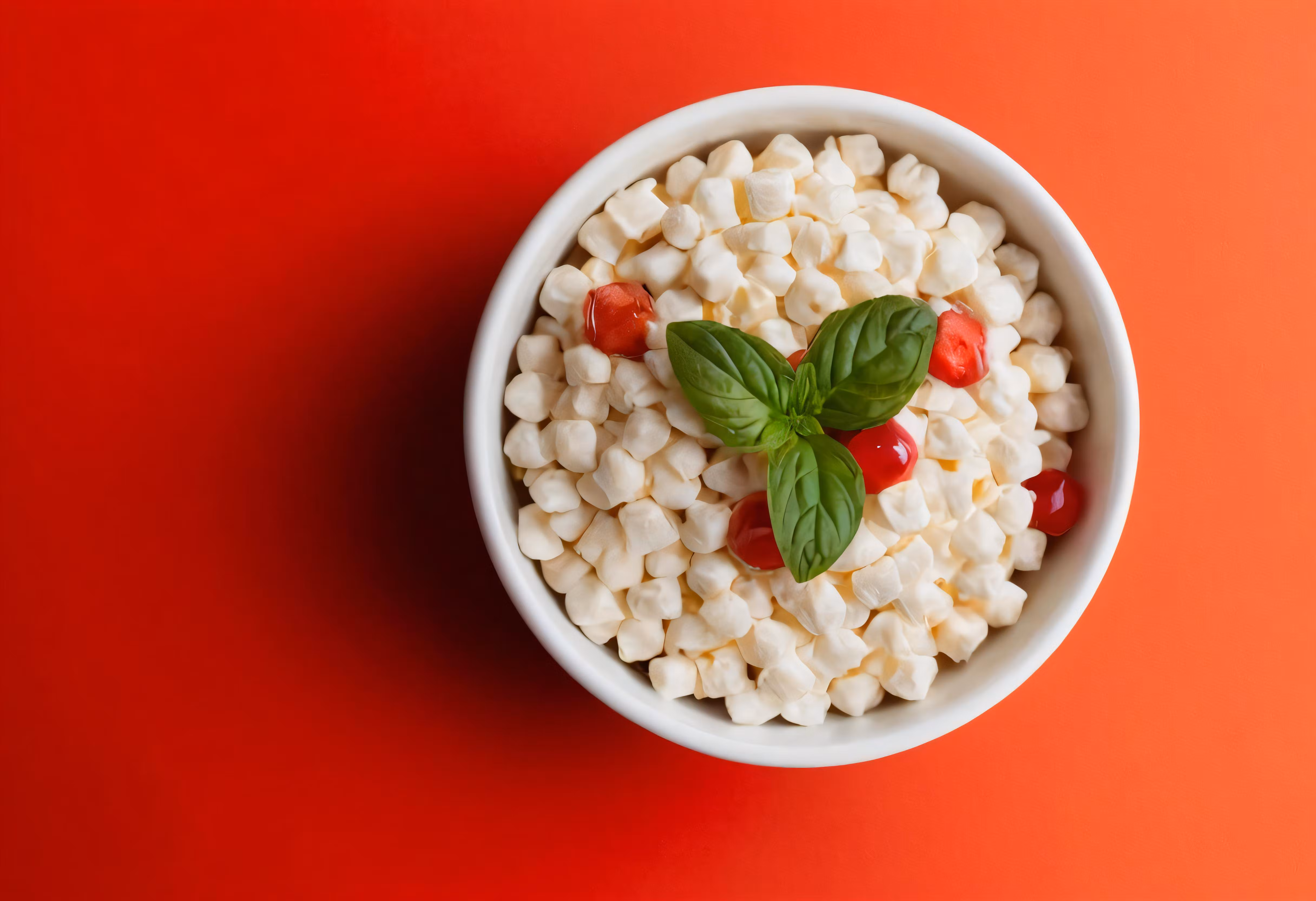 High resolution picture, free to use, a bowl filled with pasta covered in green leaf