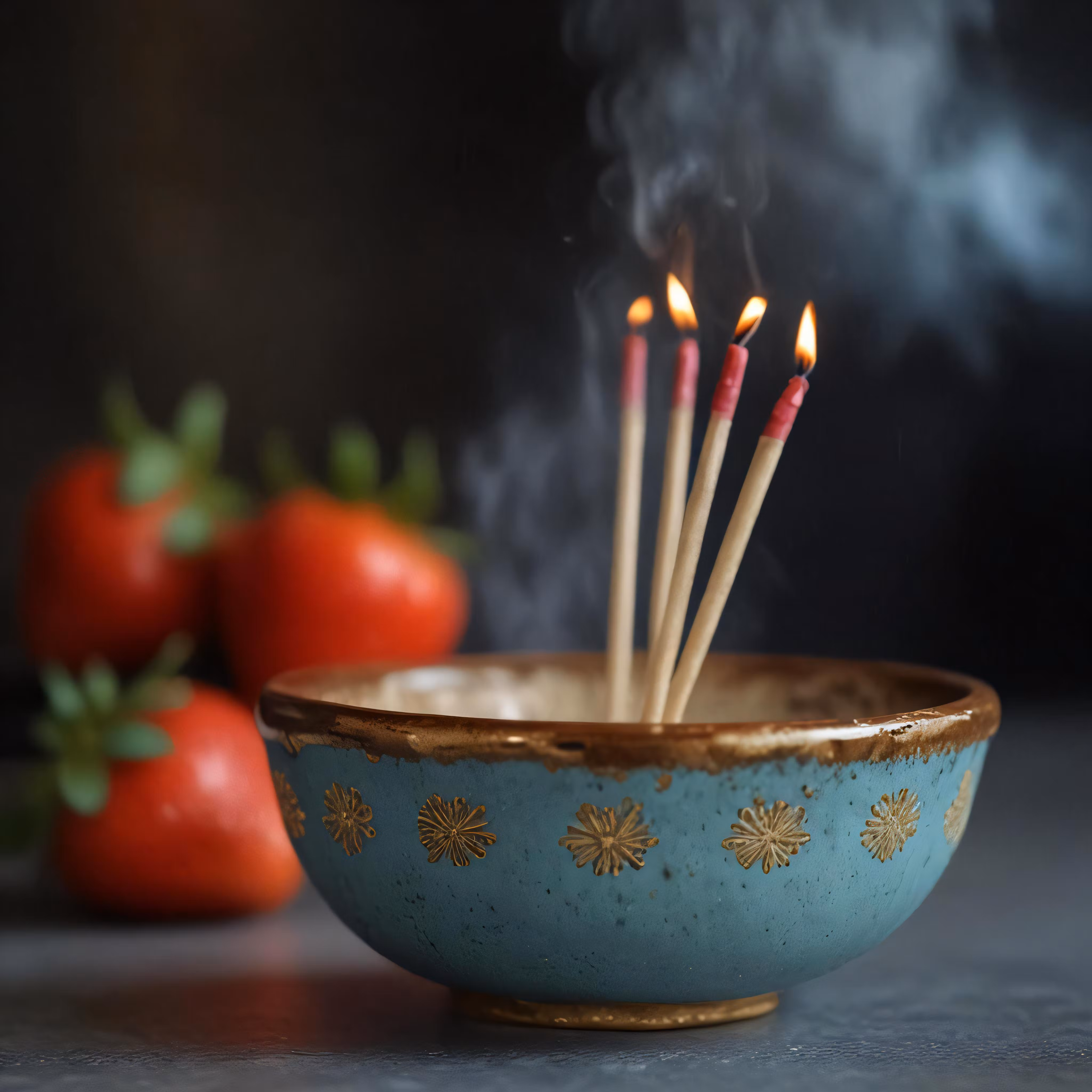 High resolution picture, free to use, a bowl with four matches in it near tomatoes