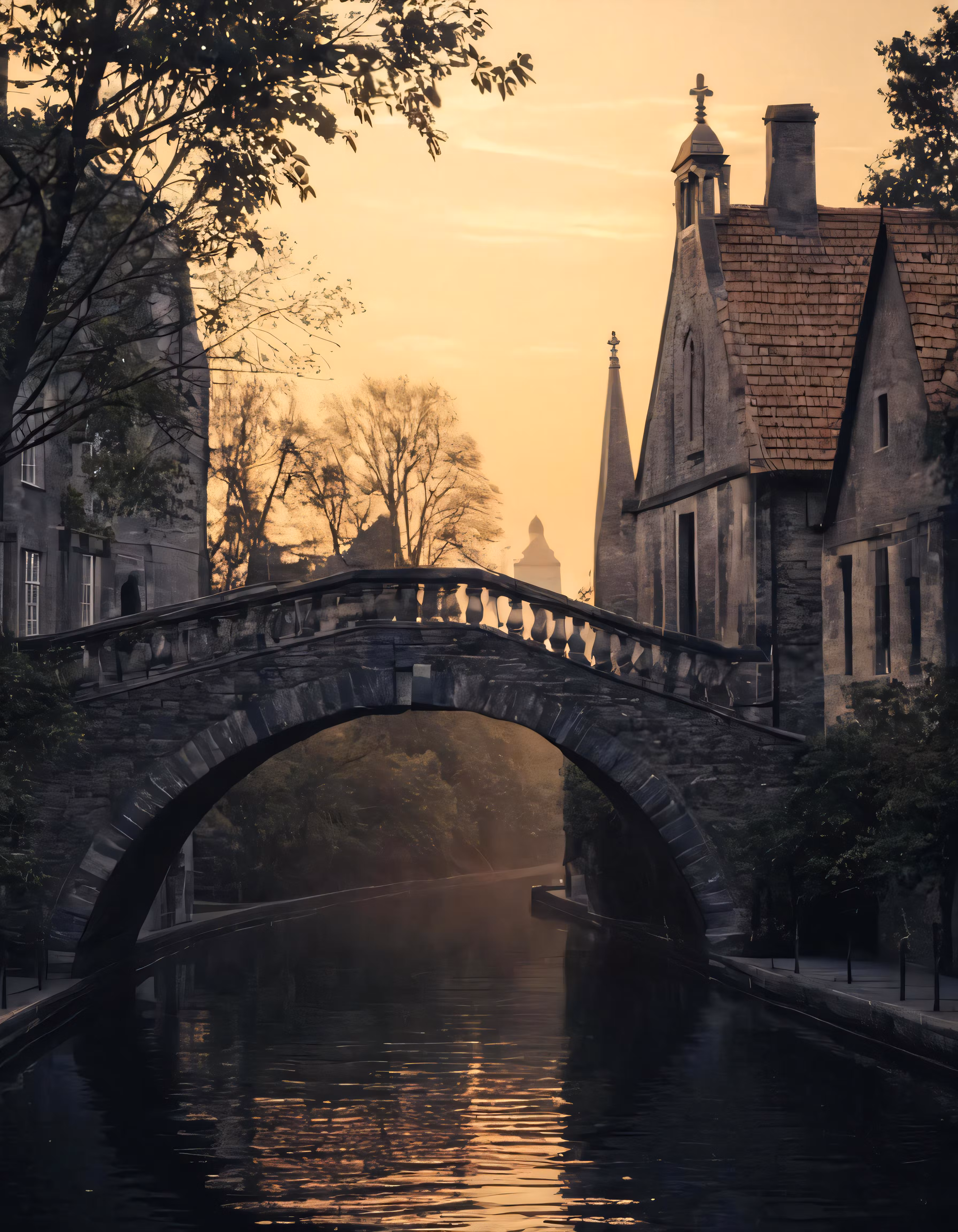 High resolution picture, free to use, a bridge crosses over the water in front of many buildings