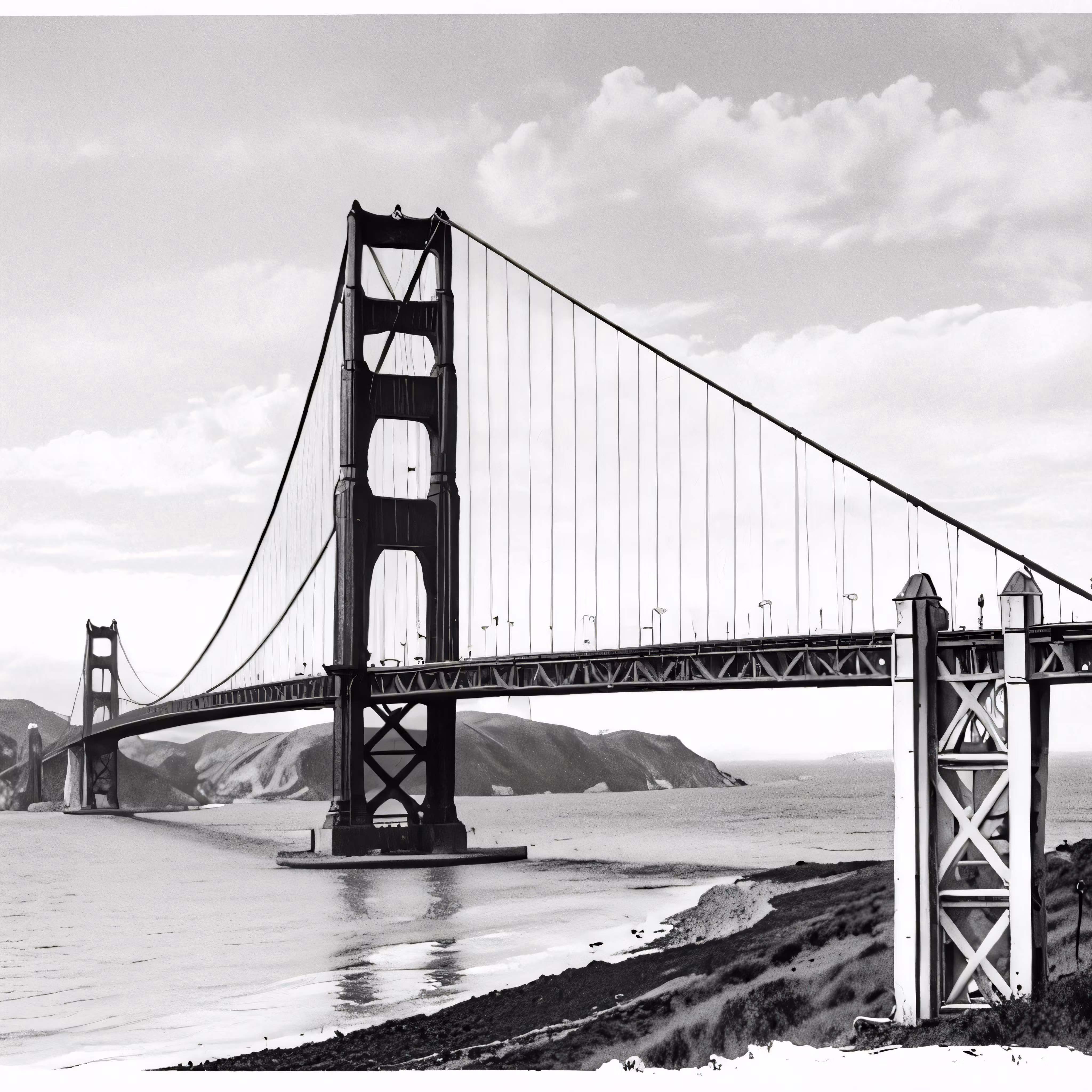 High resolution picture, free to use, a bridge near a body of water and mountains