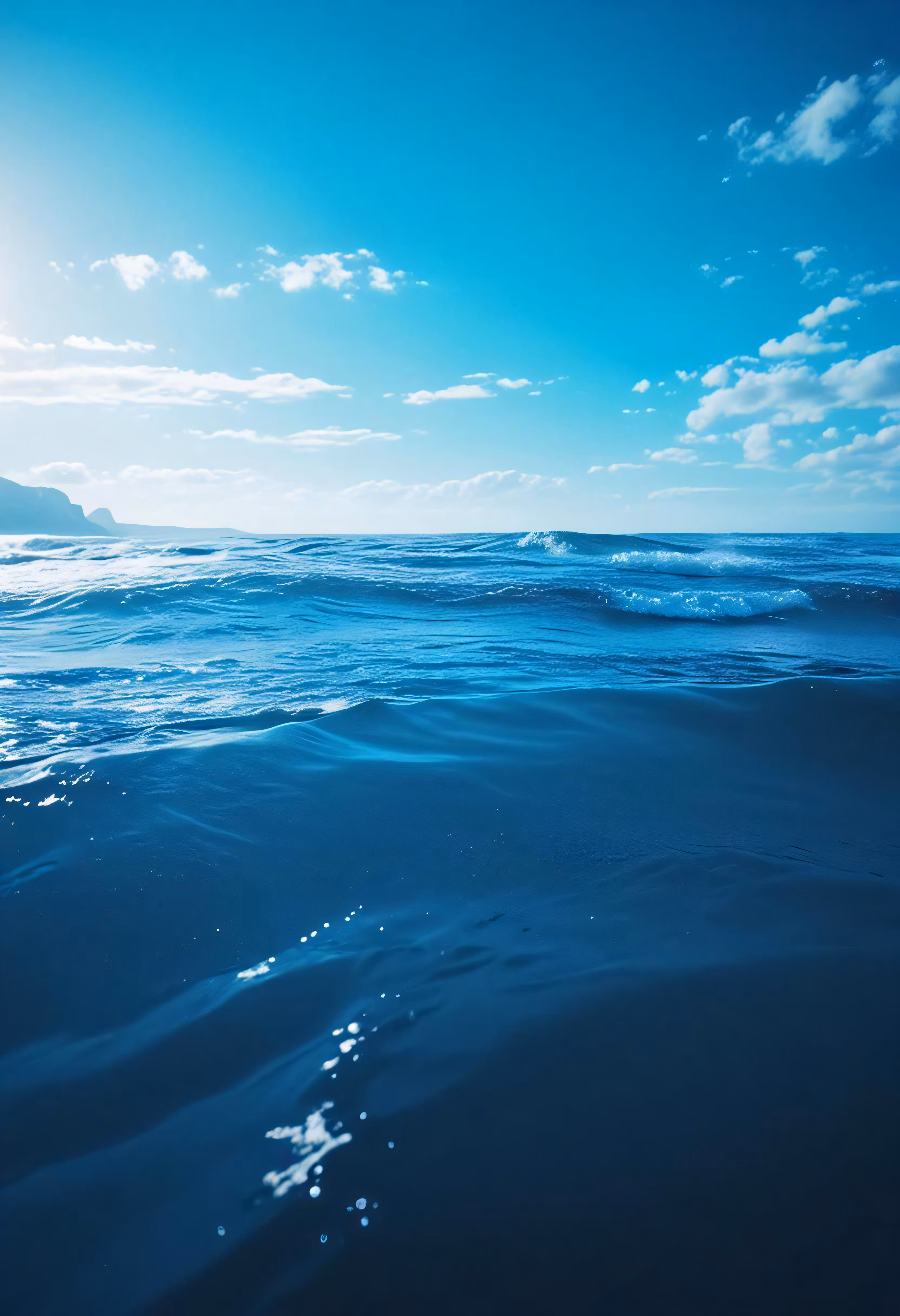High resolution picture, free to use, a bright sunny day on the ocean with a wave coming in