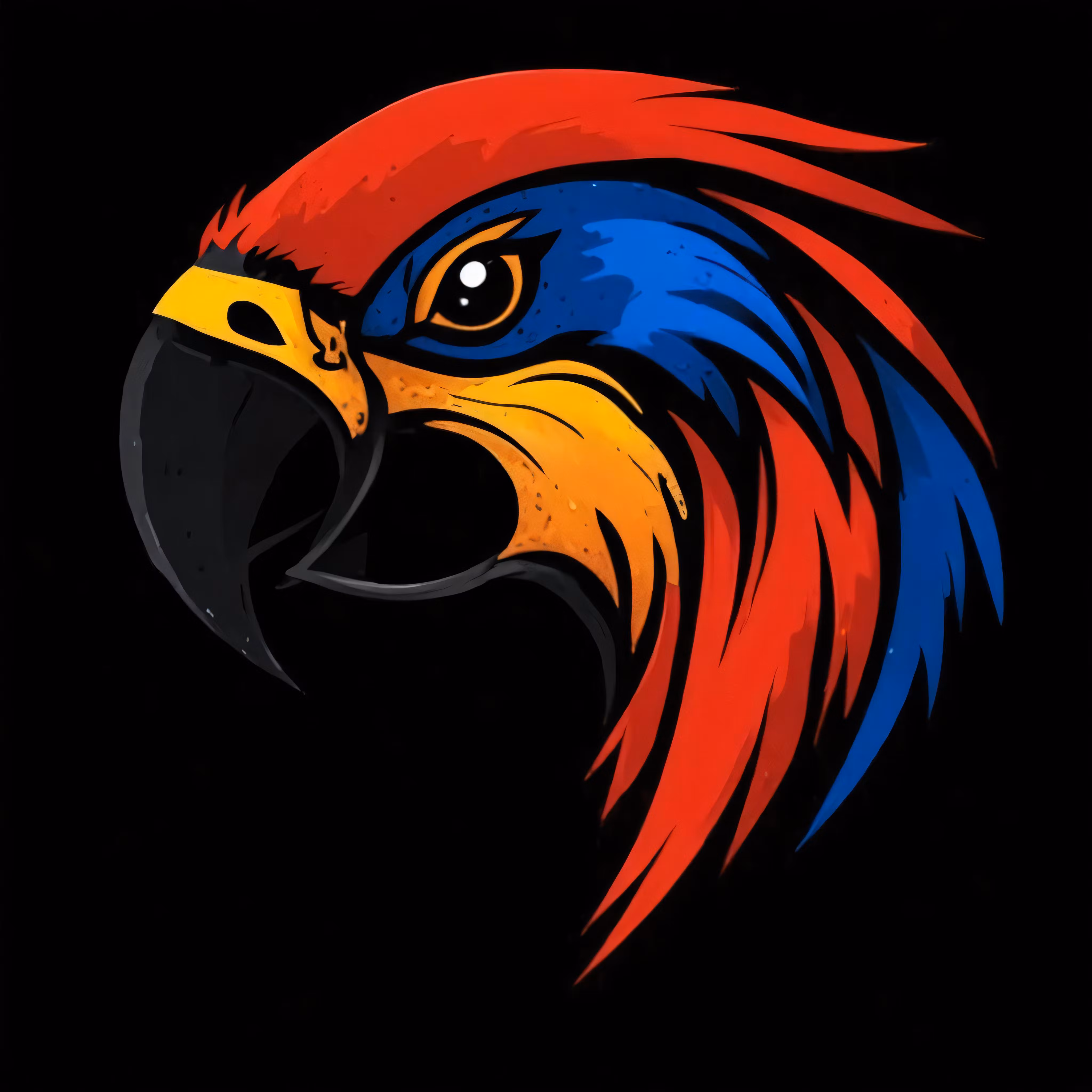 High resolution picture, free to use, a brightly colored bird on a black background