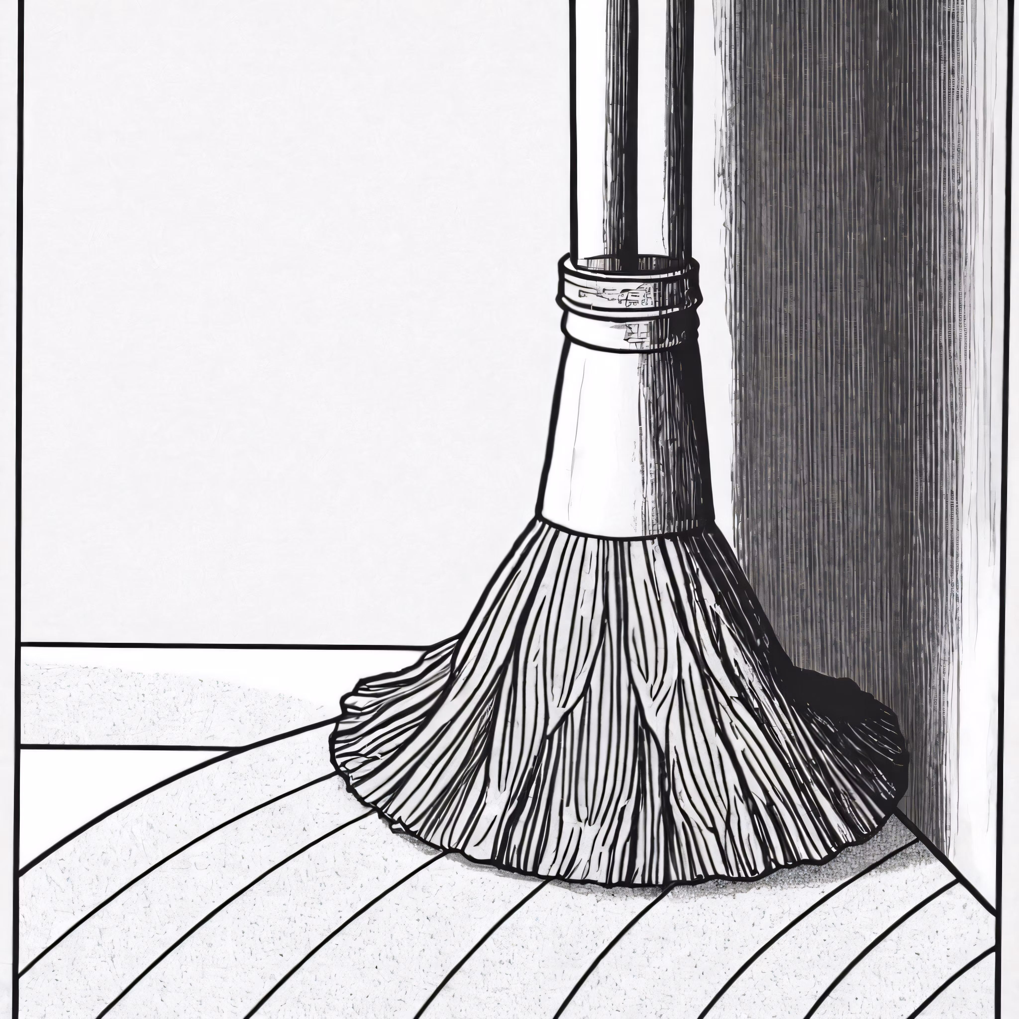 High resolution picture, free to use, a broom standing on a hard wood floor