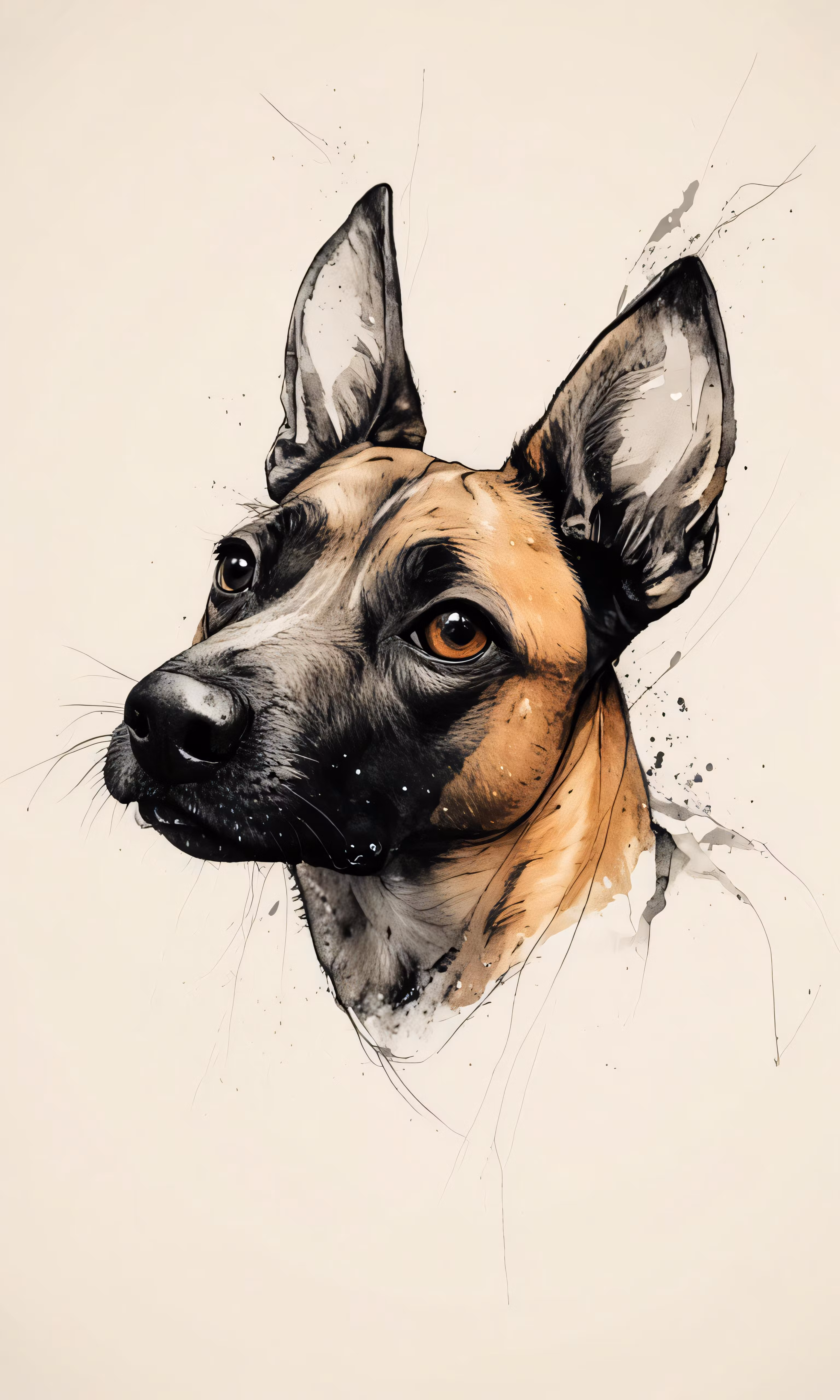 High resolution picture, free to use, a brown and black dog looking straight ahead