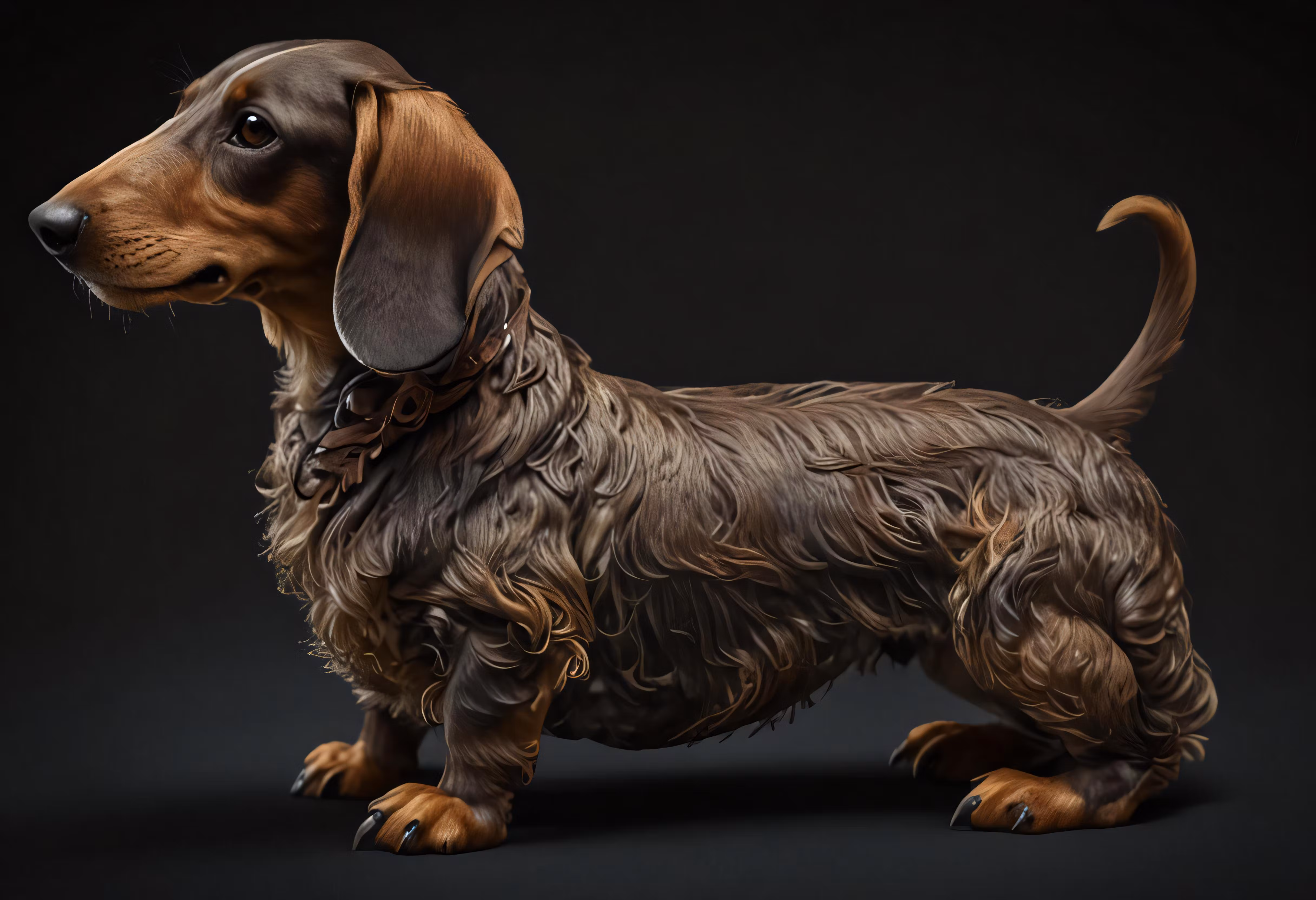 High resolution picture, free to use, a brown dog standing on top of a black floor