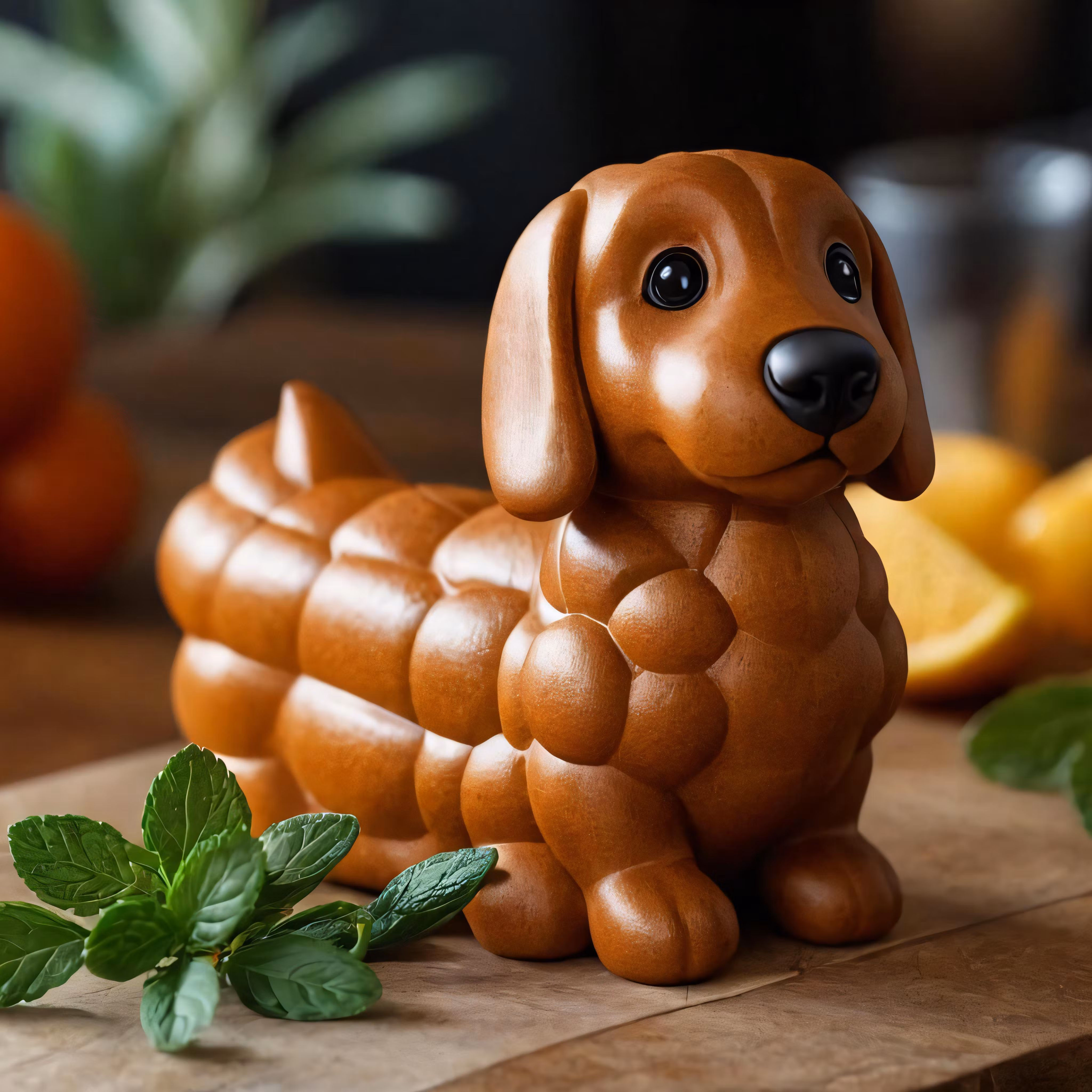 High resolution picture, free to use, a brown dog statue on a wooden board