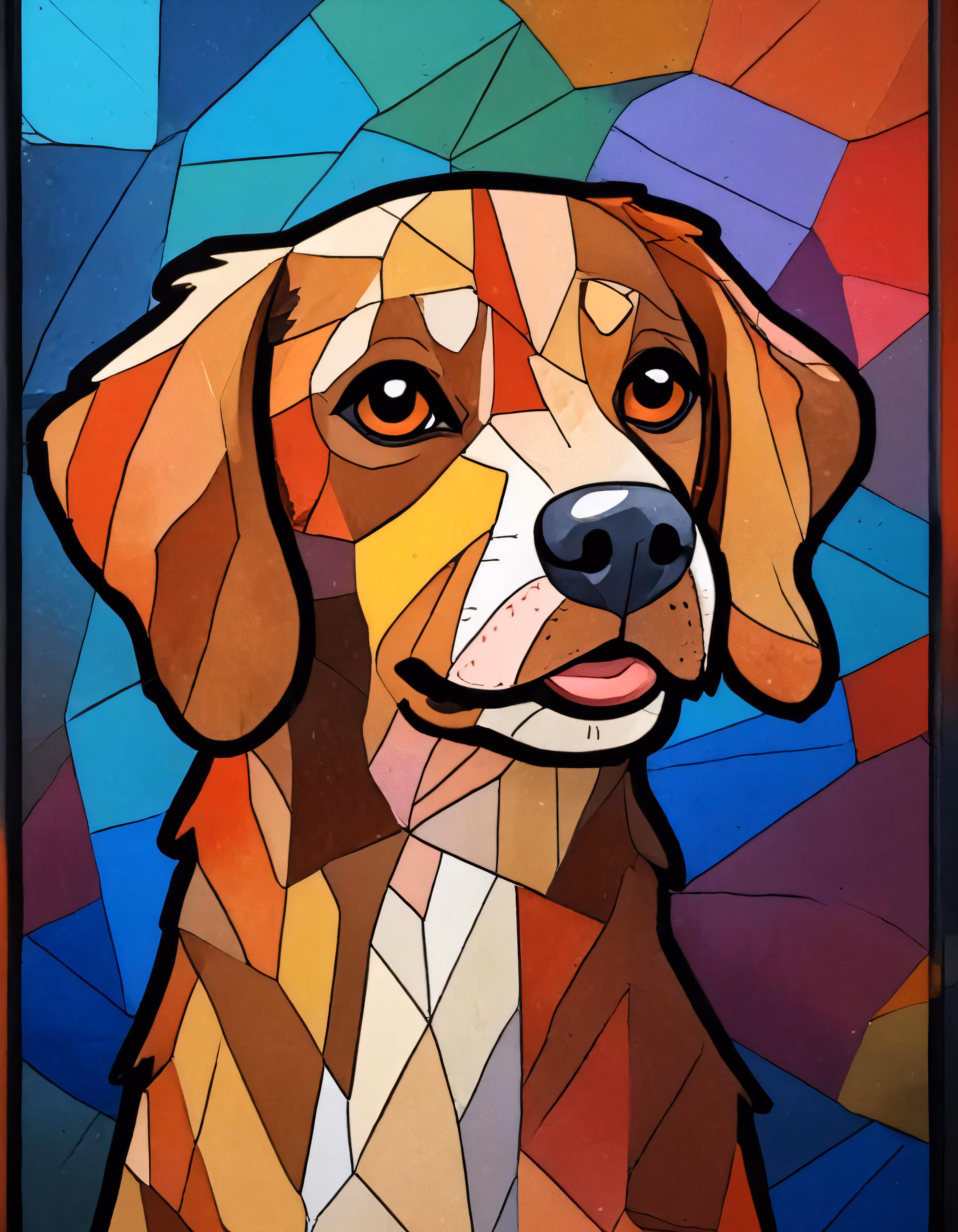 High resolution picture, free to use, a brown dog with blue eyes on a colorful background