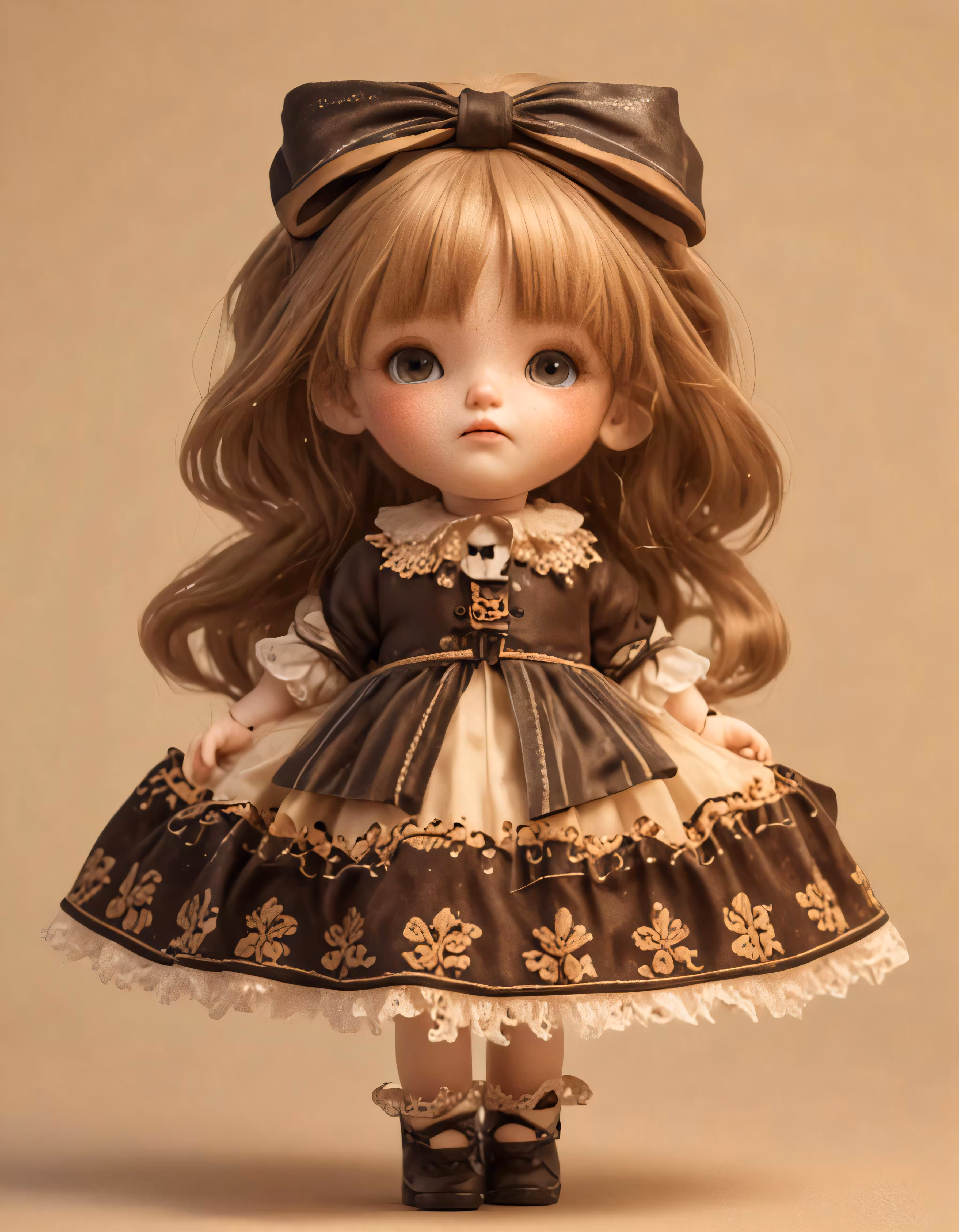 High resolution picture, free to use, a brown dress with brown bows is a lovely doll for this little girl