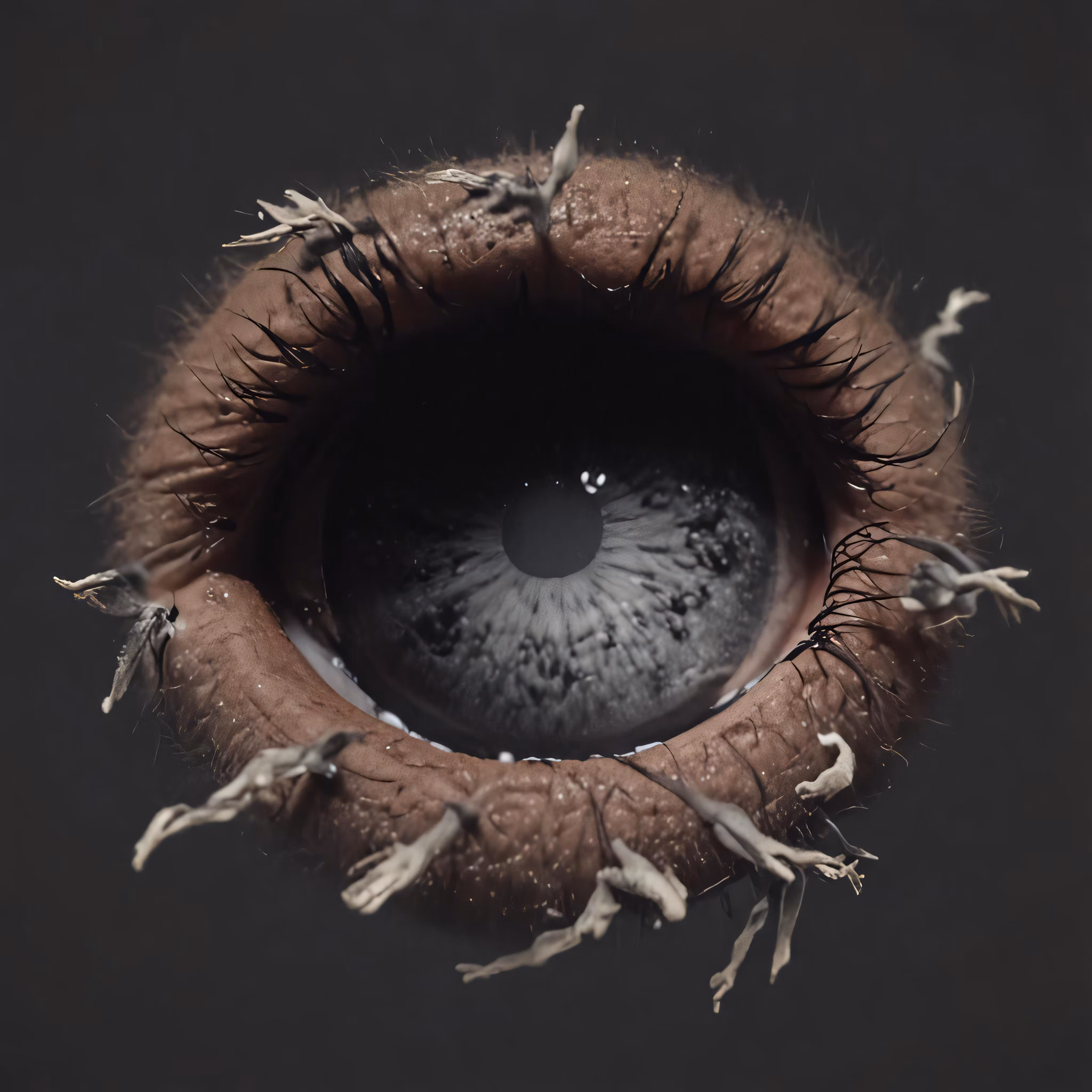 High resolution picture, free to use, a brown eye has a long lashes and white dots around it