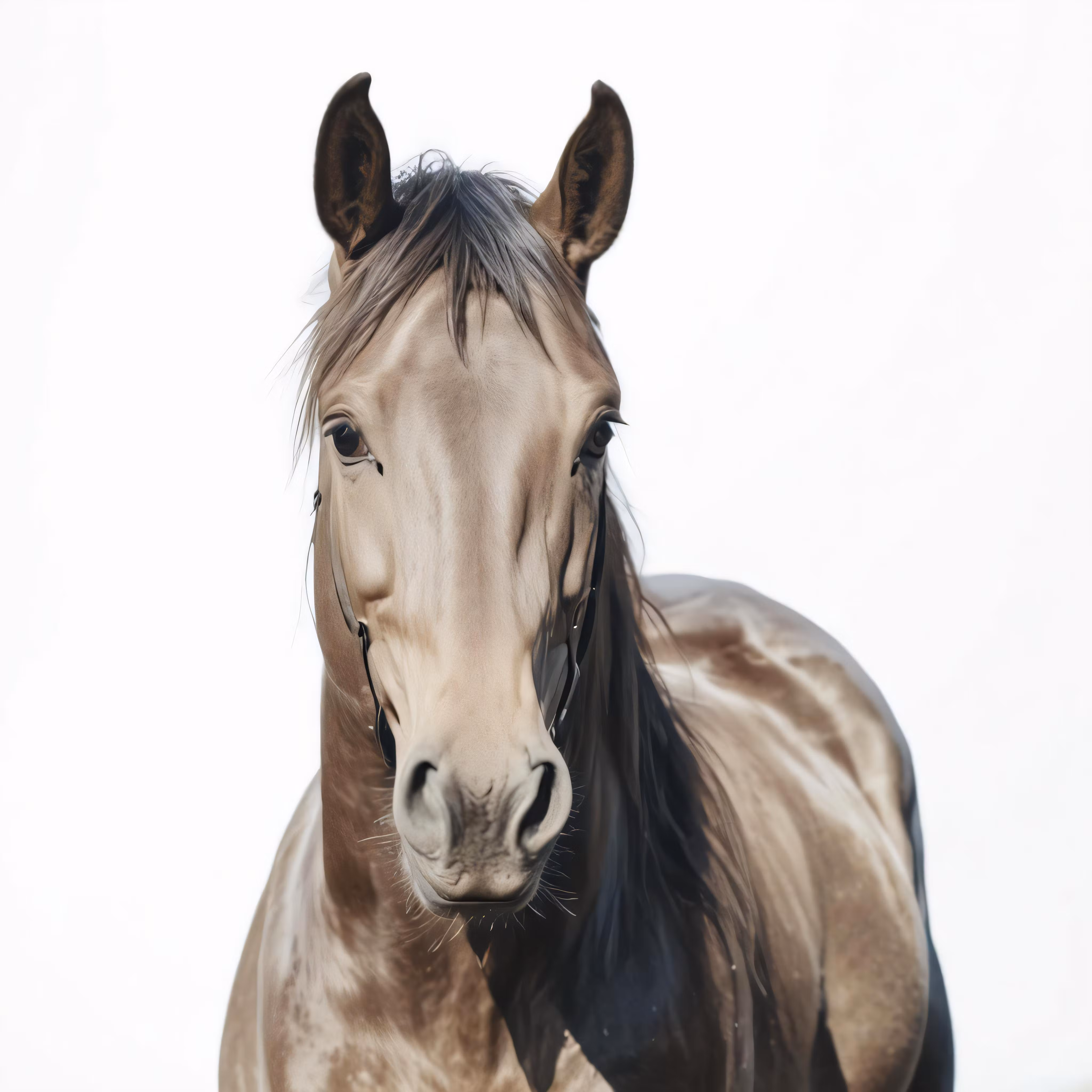 High resolution picture, free to use, a brown horse looking at the camera with a white background