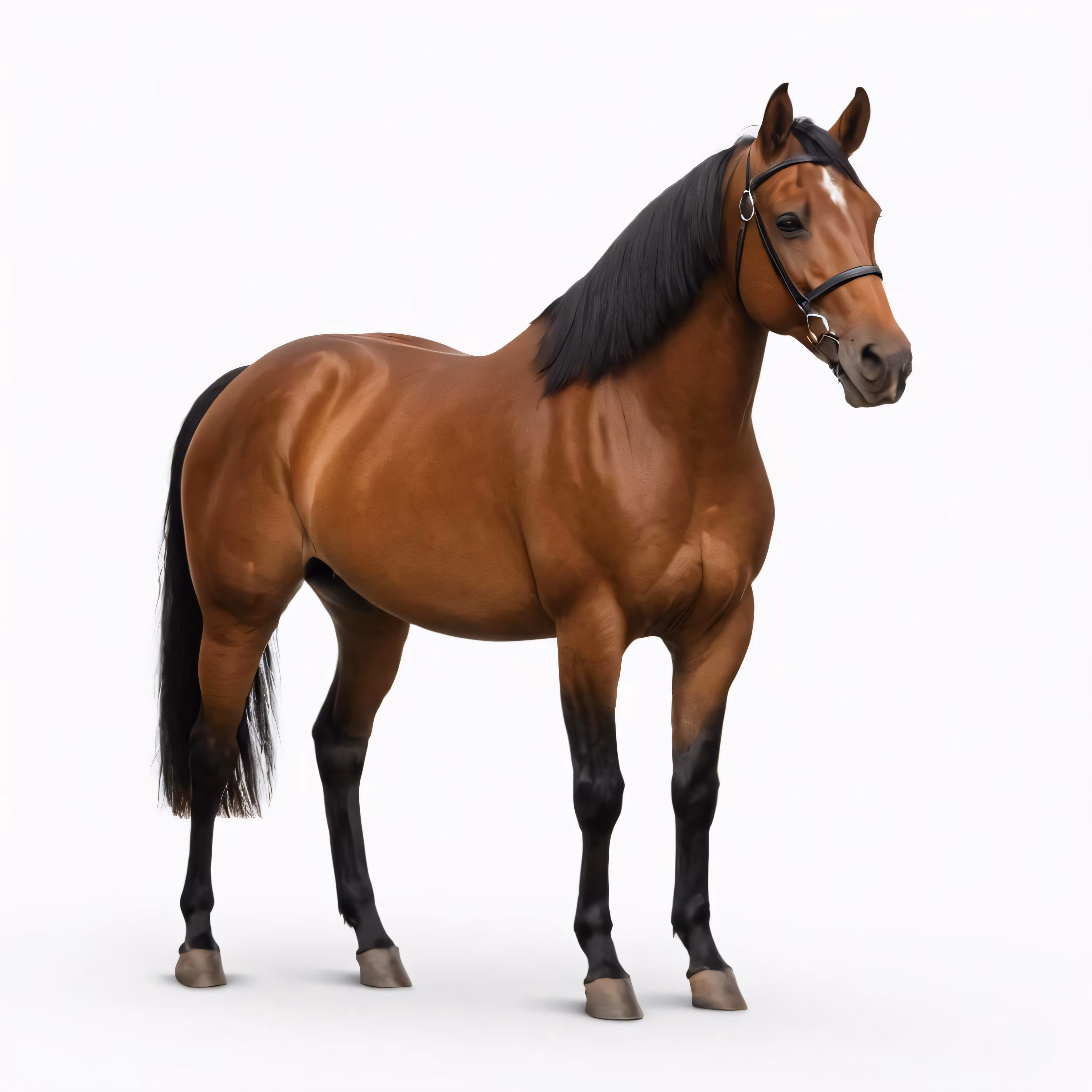 High resolution picture, free to use, a brown horse standing with its head turned to the side