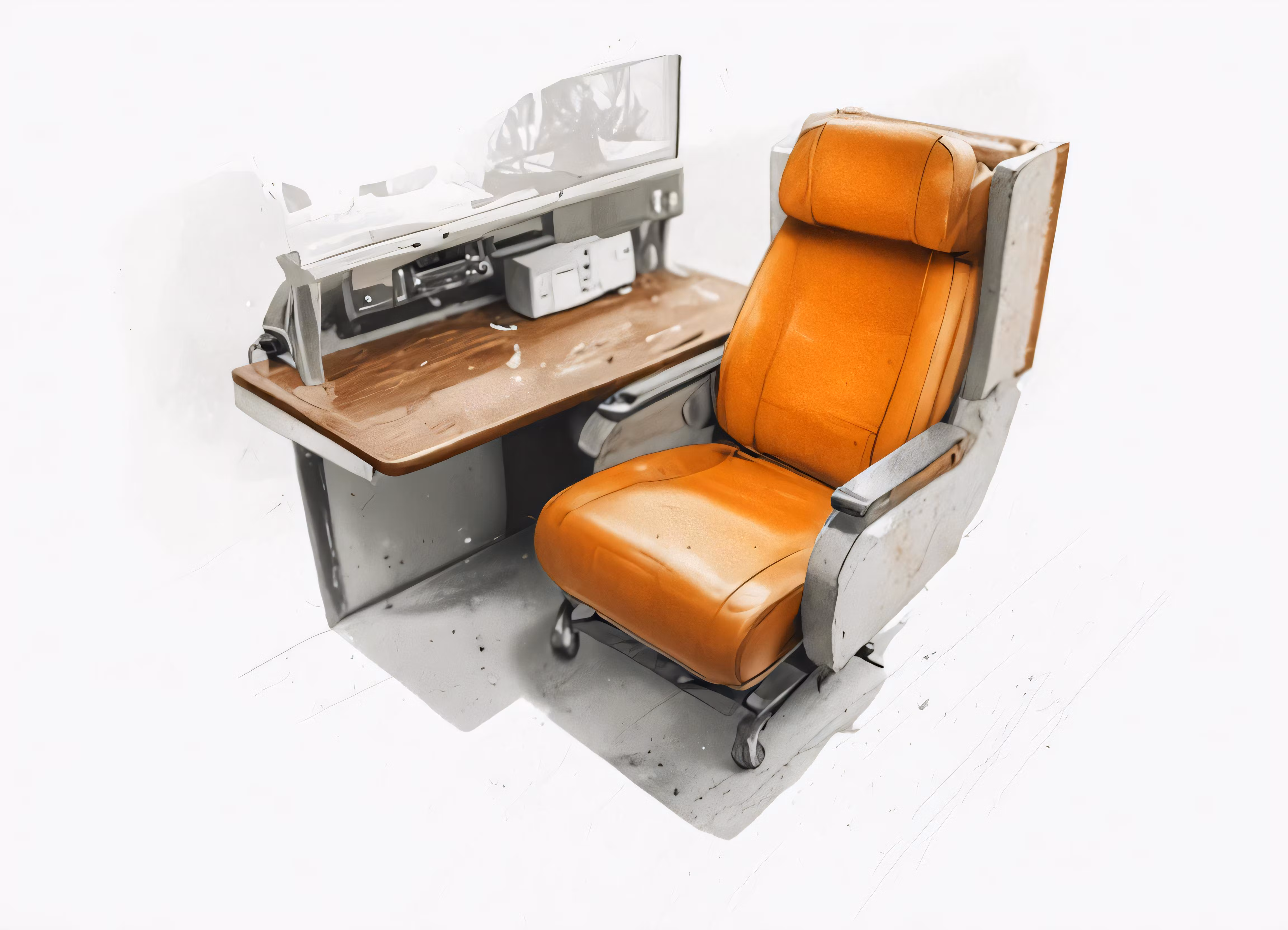 High resolution picture, free to use, a brown office chair next to a table with a mirror