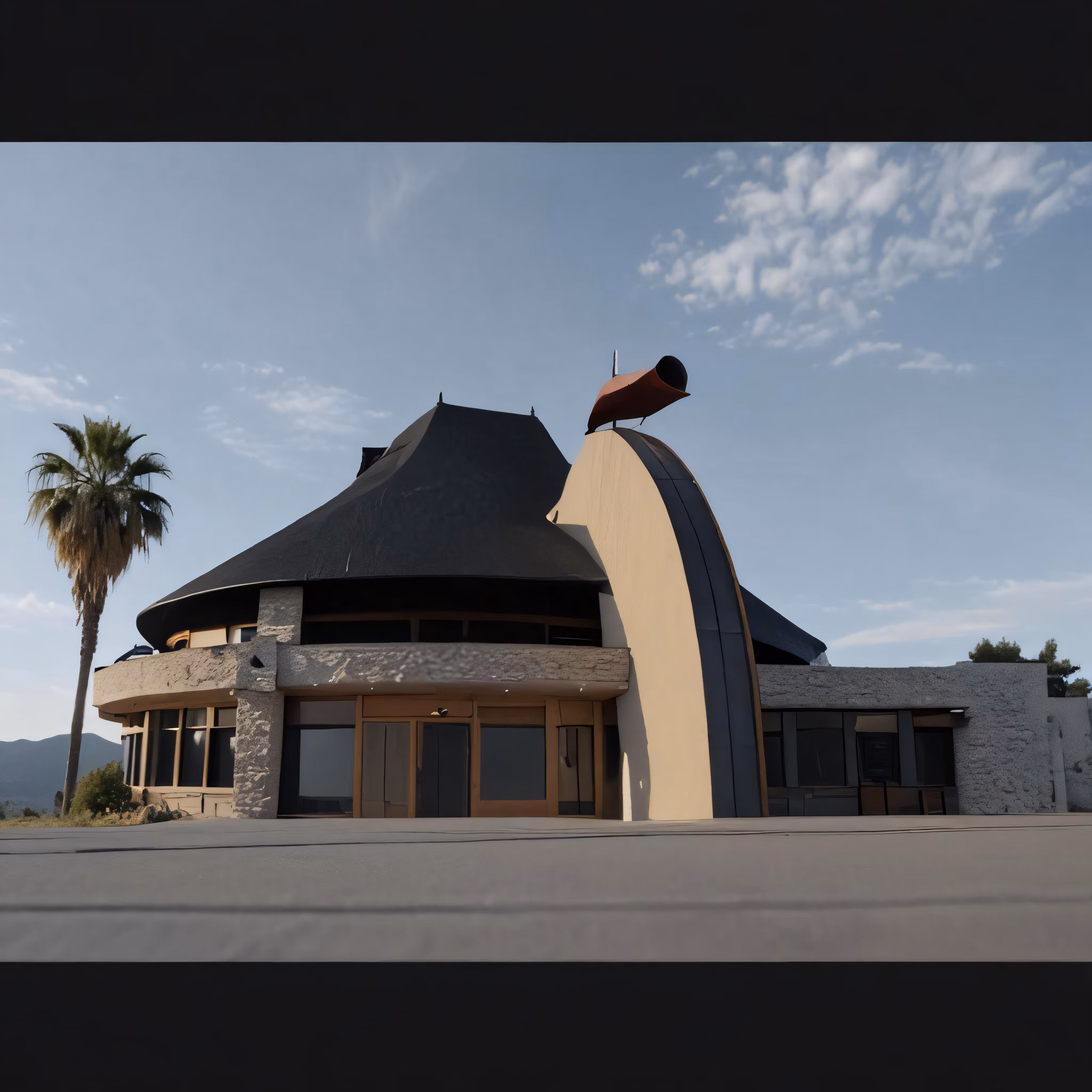 High resolution picture, free to use, a building has an unusual roof top and is very large
