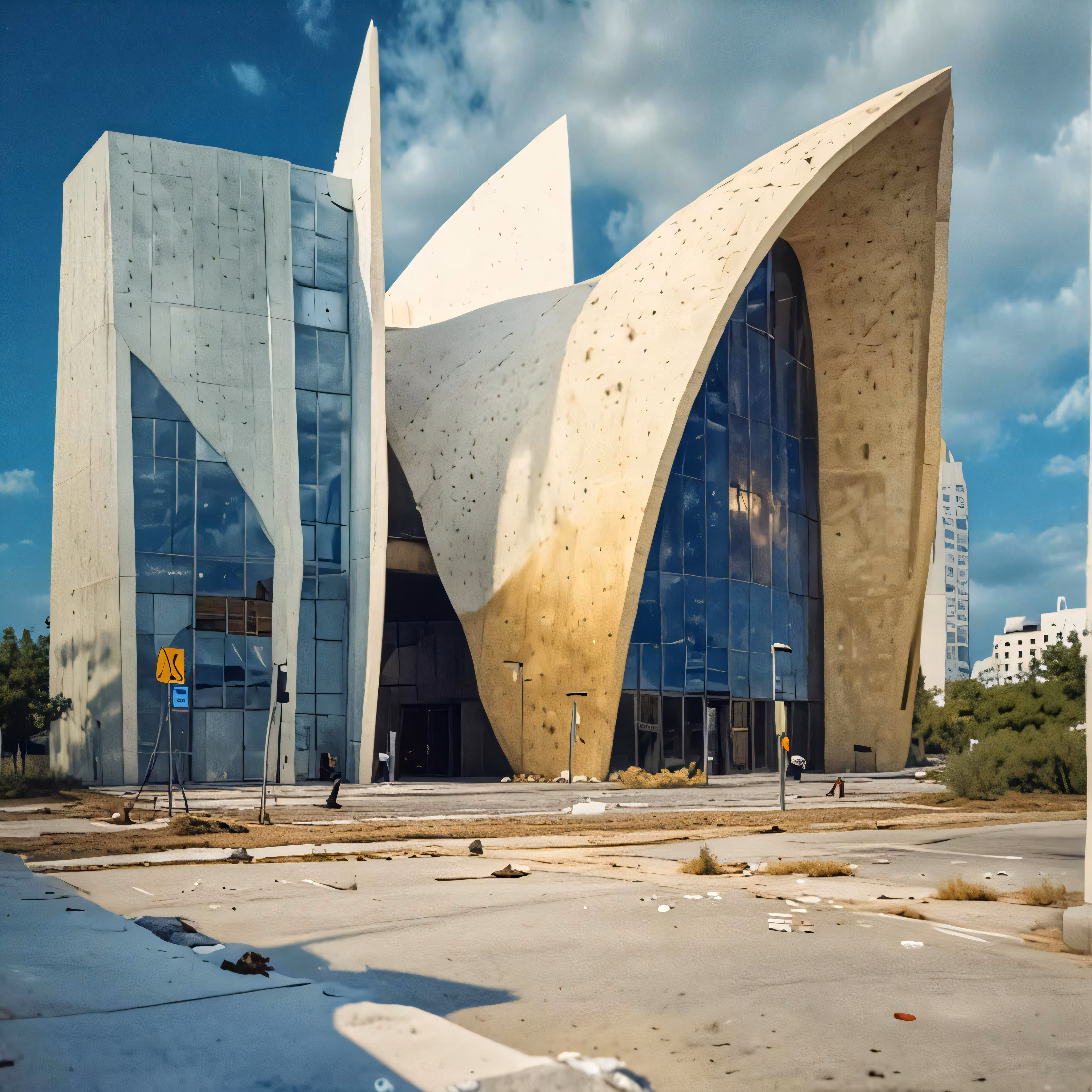 High resolution picture, free to use, a building in front of a road with cars parked outside it