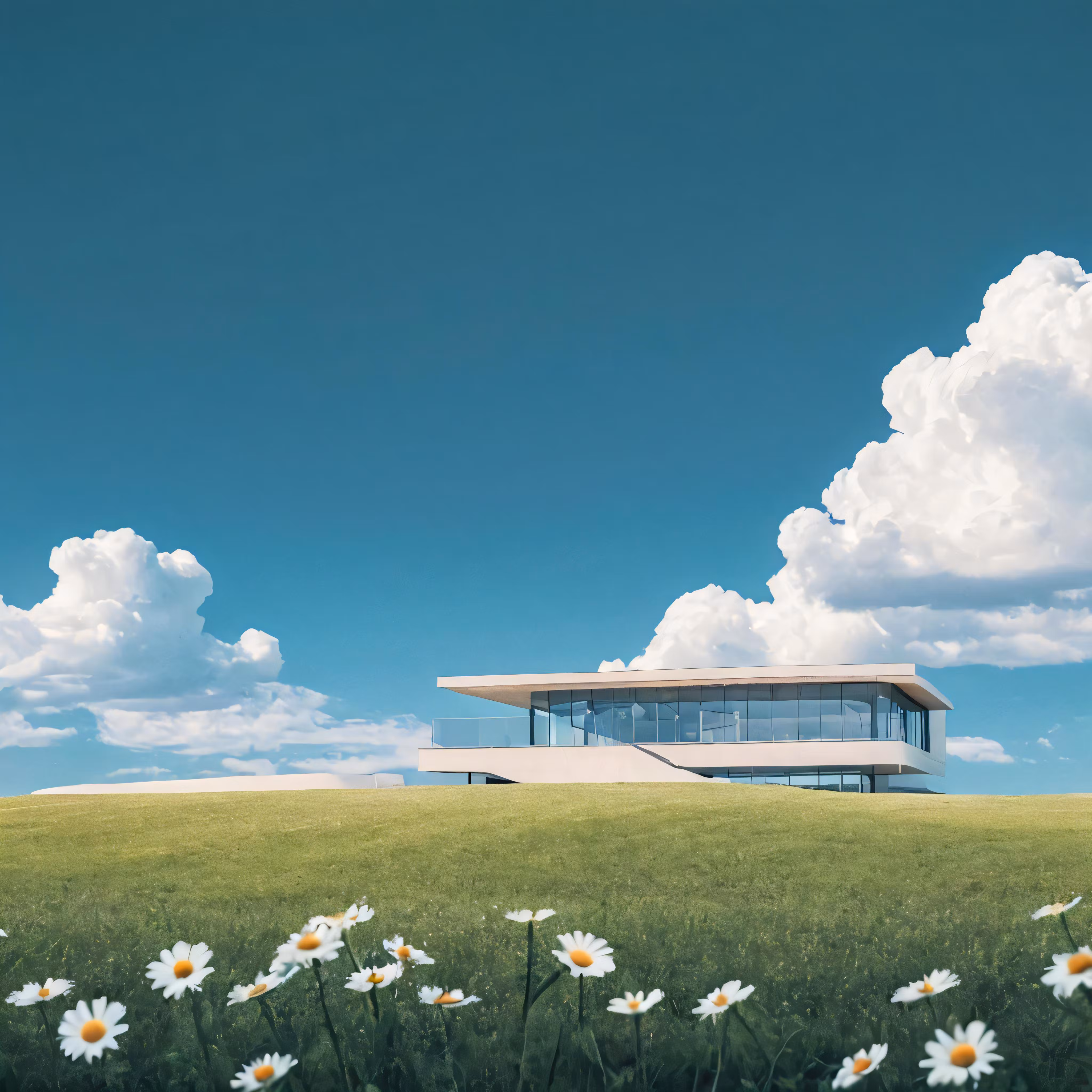 High resolution picture, free to use, a building sitting on the top of a grassy hill