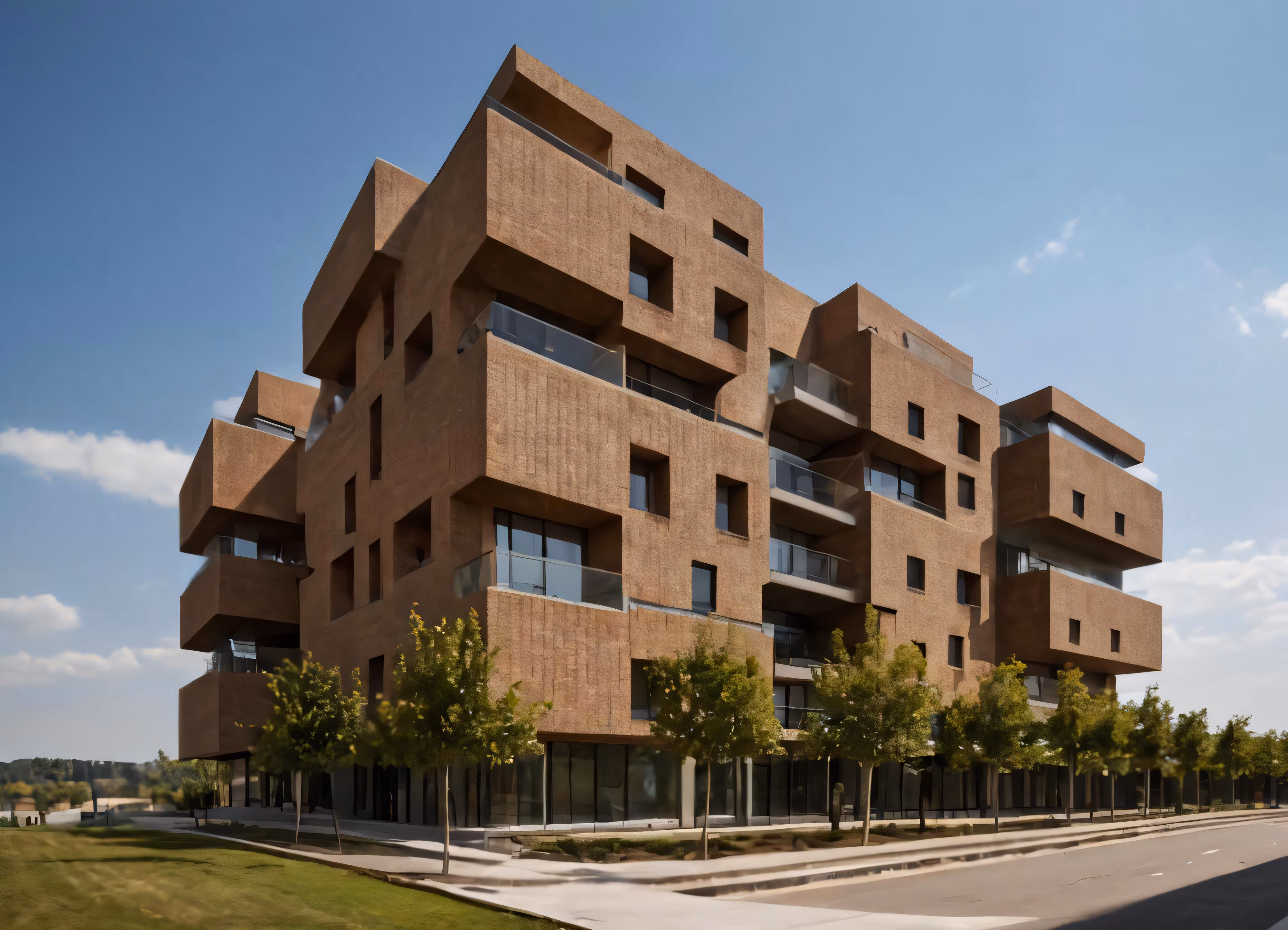 High resolution picture, free to use, a building that has multiple windows and a car going through it
