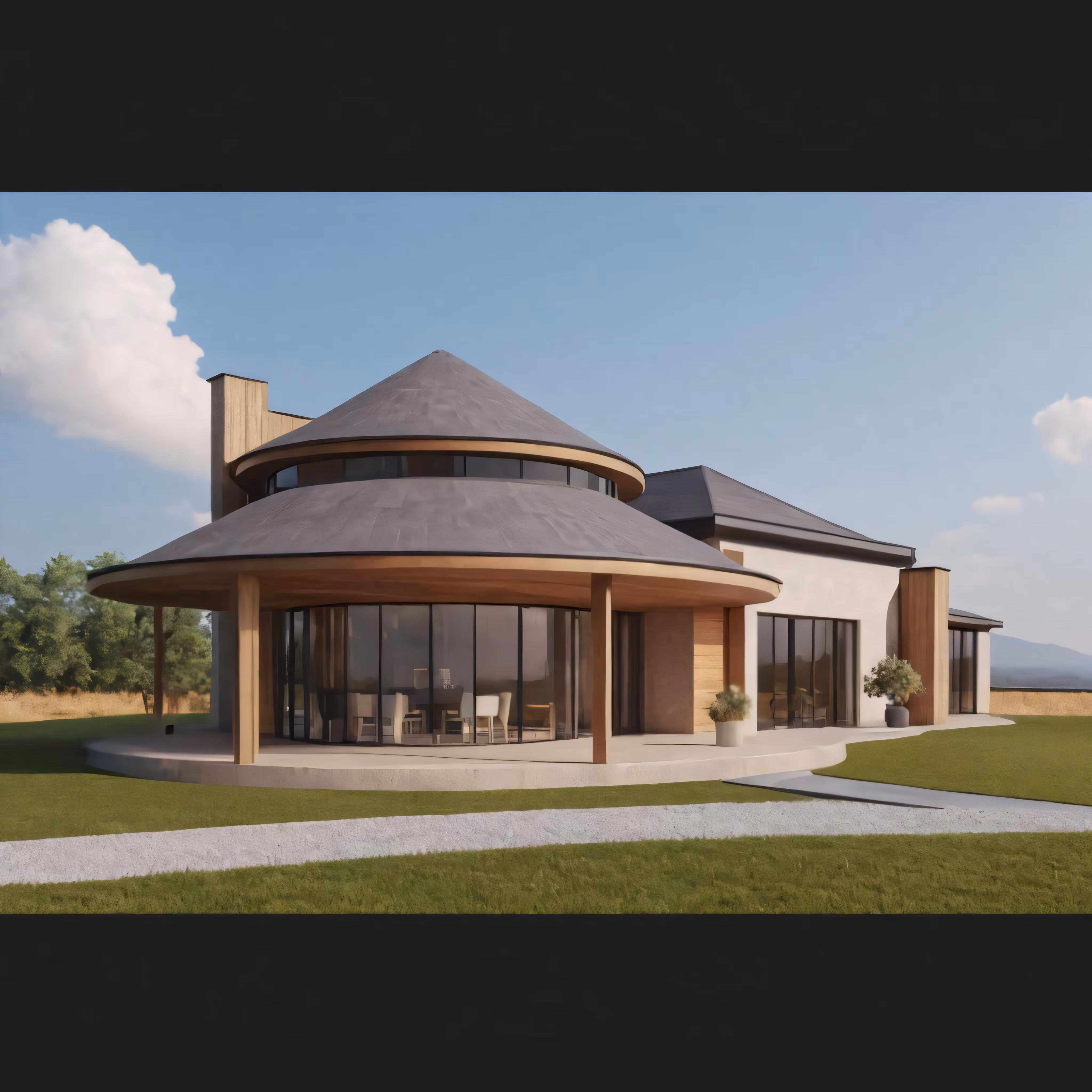 High resolution picture, free to use, a building with large windows and a sloping roof