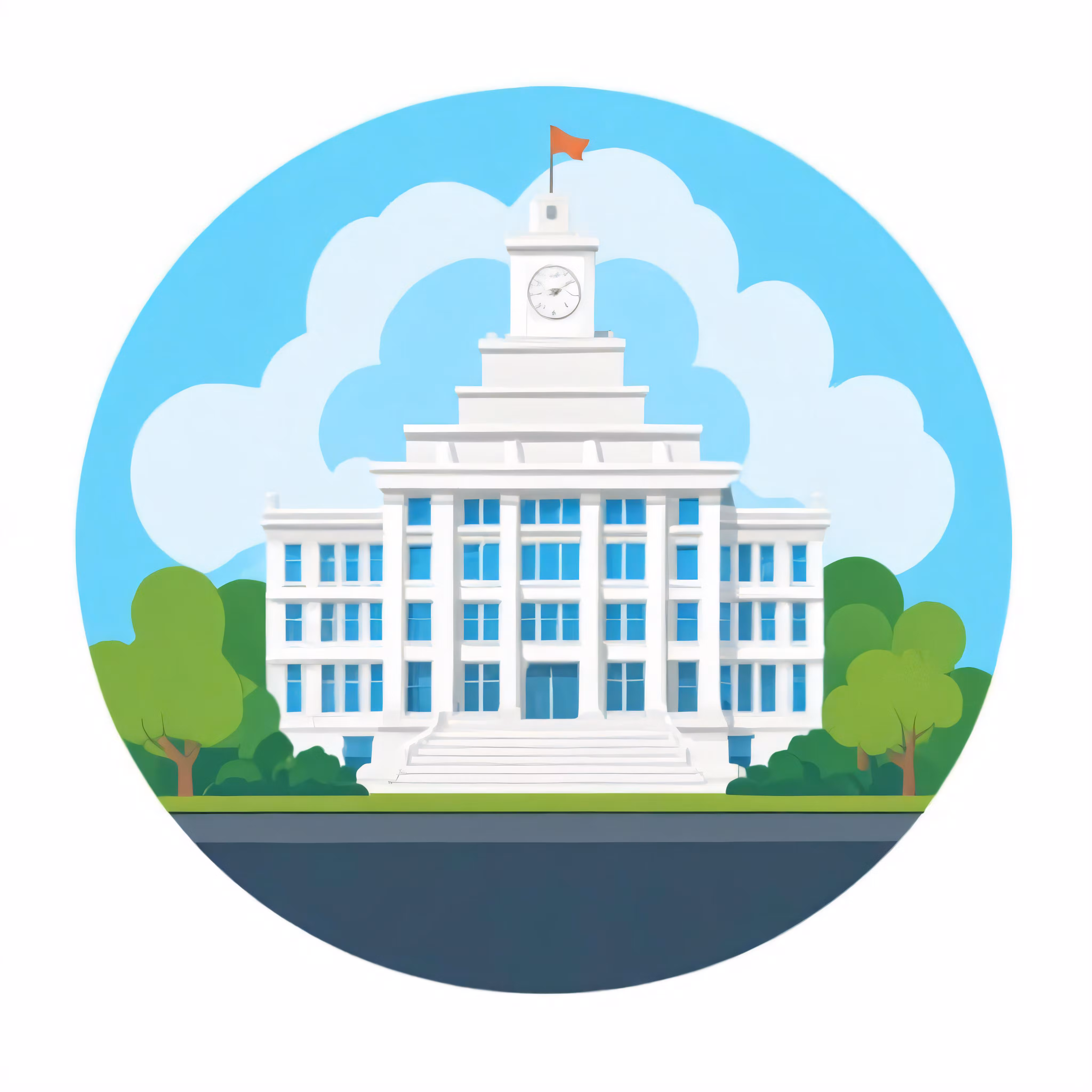 High resolution picture, free to use, a building with trees and a clock in the top right corner