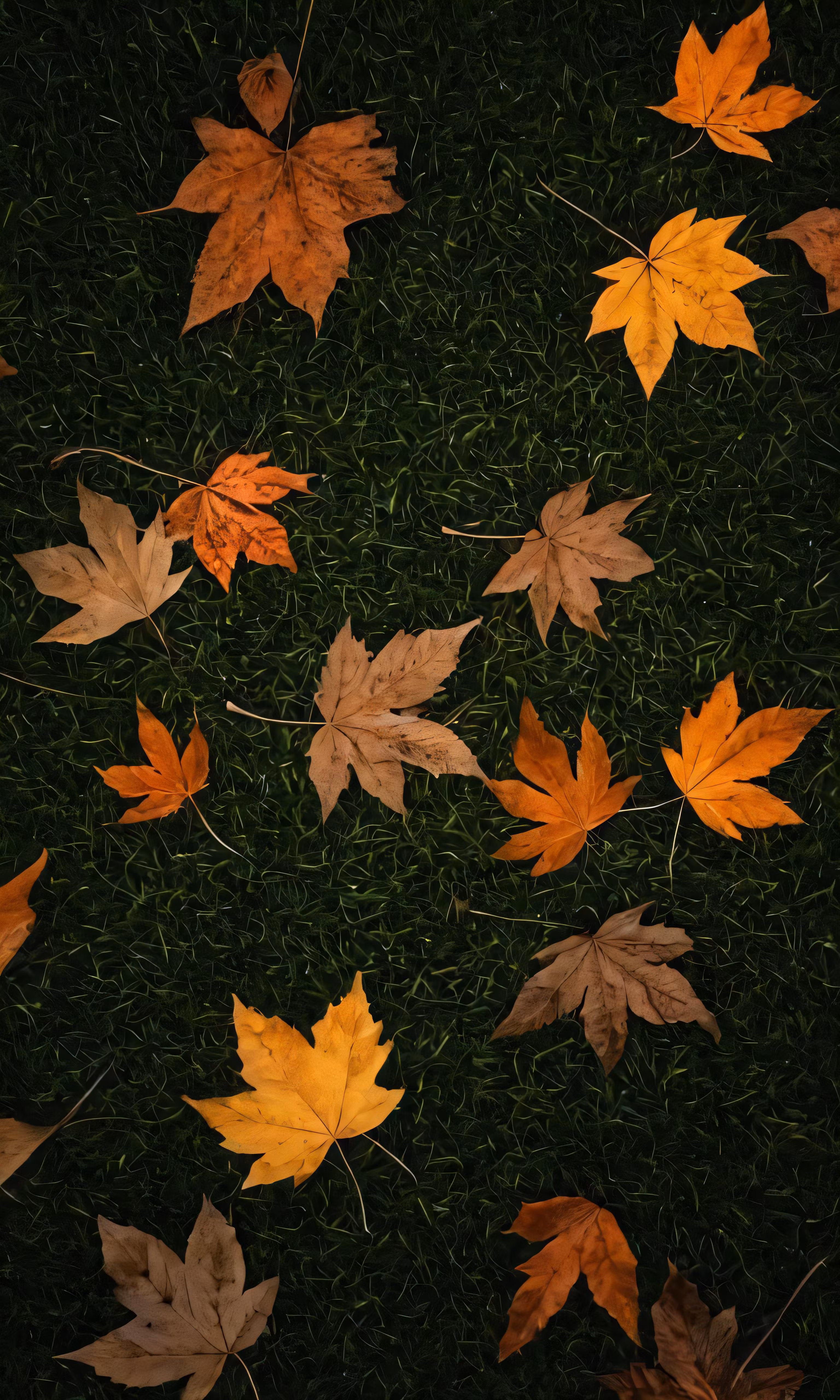High resolution picture, free to use, a bunch of fallen leaves laying on the grass