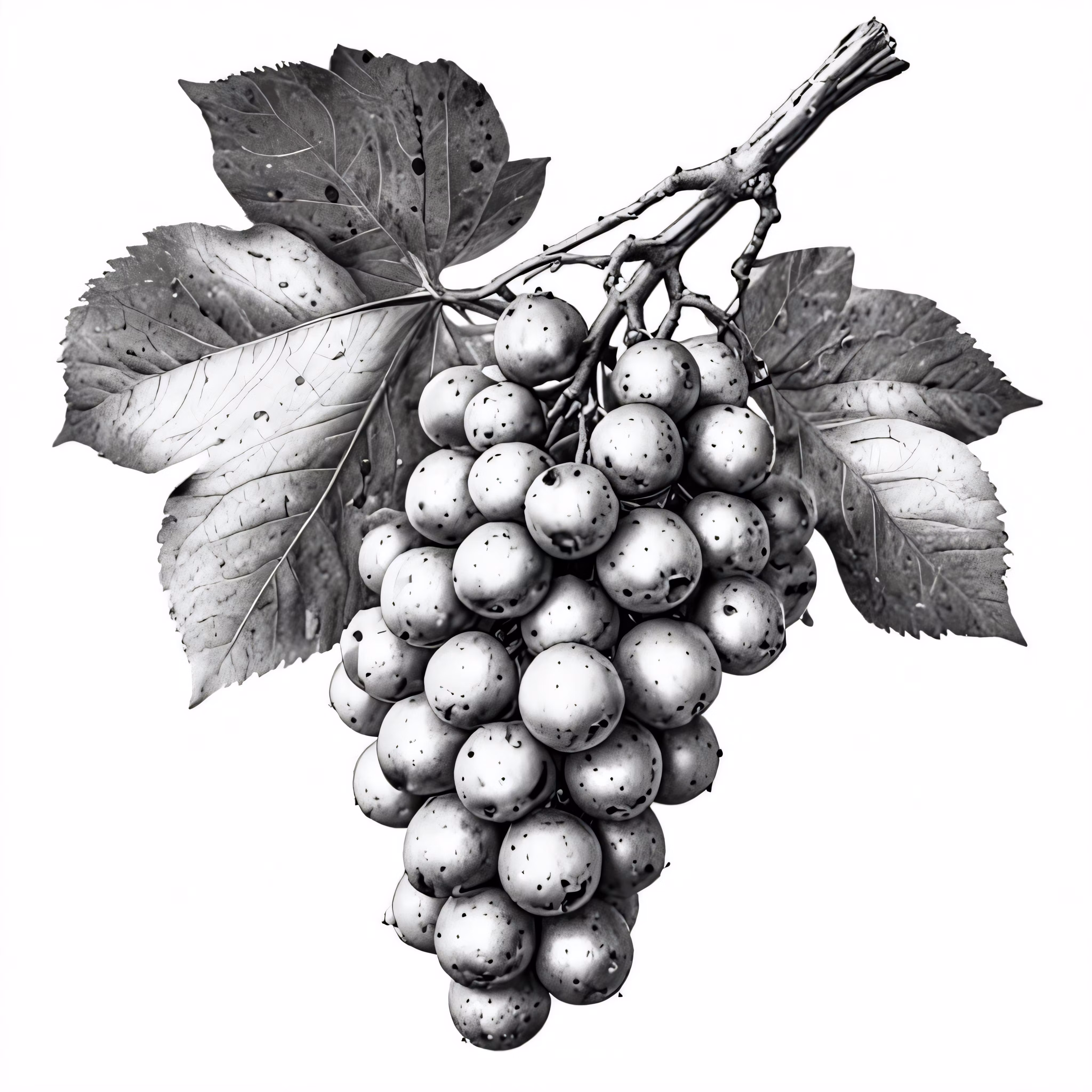 High resolution picture, free to use, a bunch of grapes with leaves hanging from it
