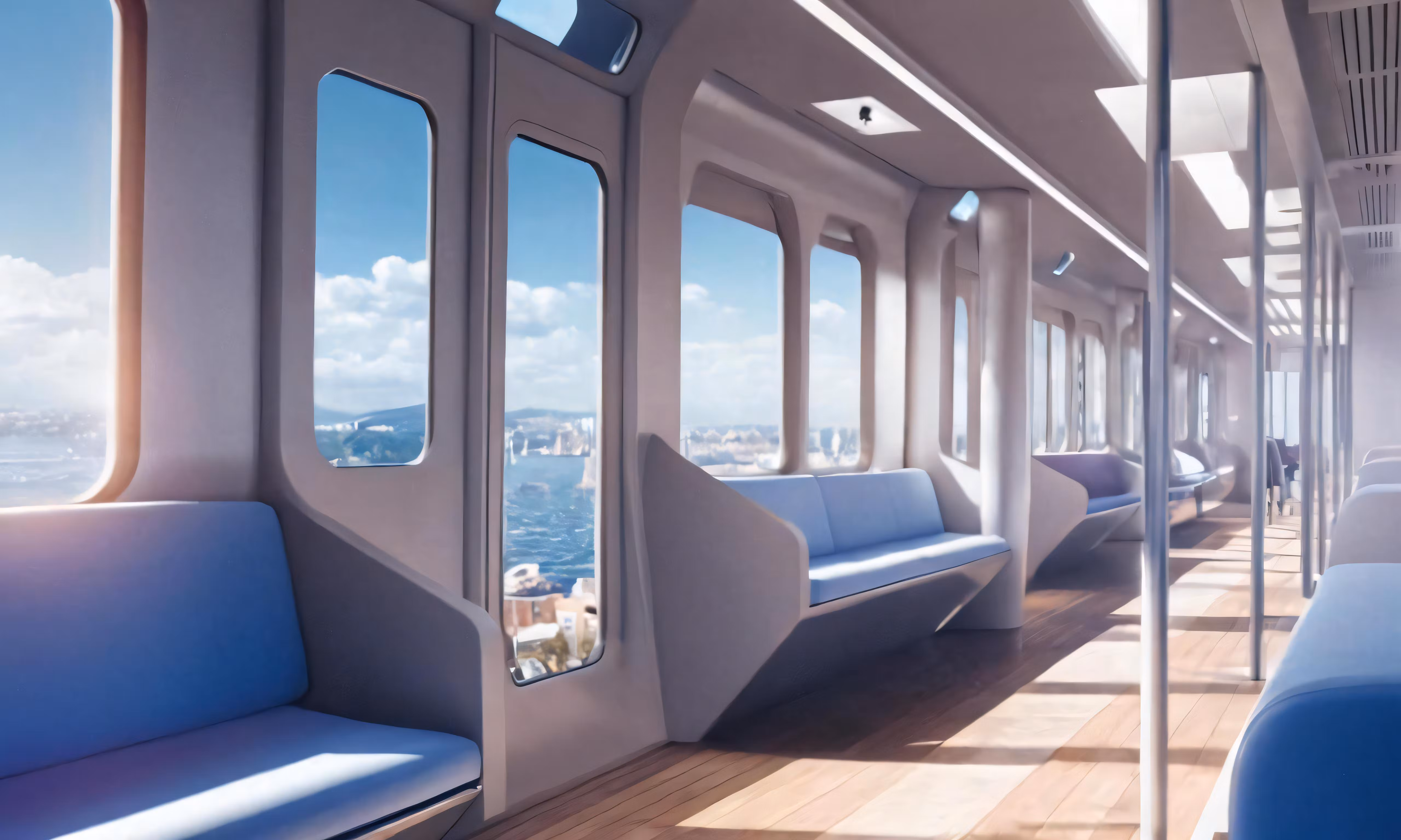 High resolution picture, free to use, a bunch of seats inside of a train next to windows