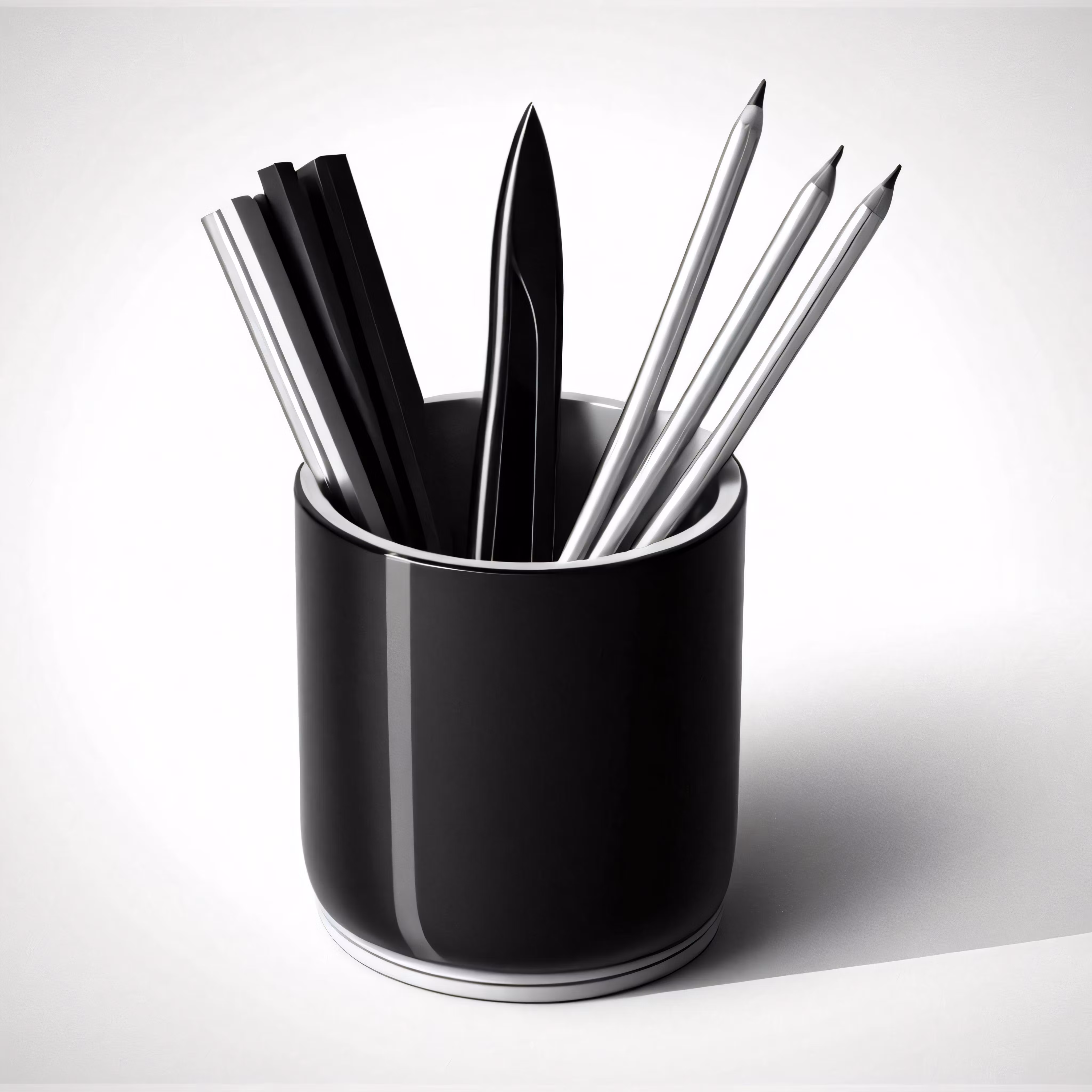 High resolution picture, free to use, a bunch of silver pen pens sitting inside of a cup