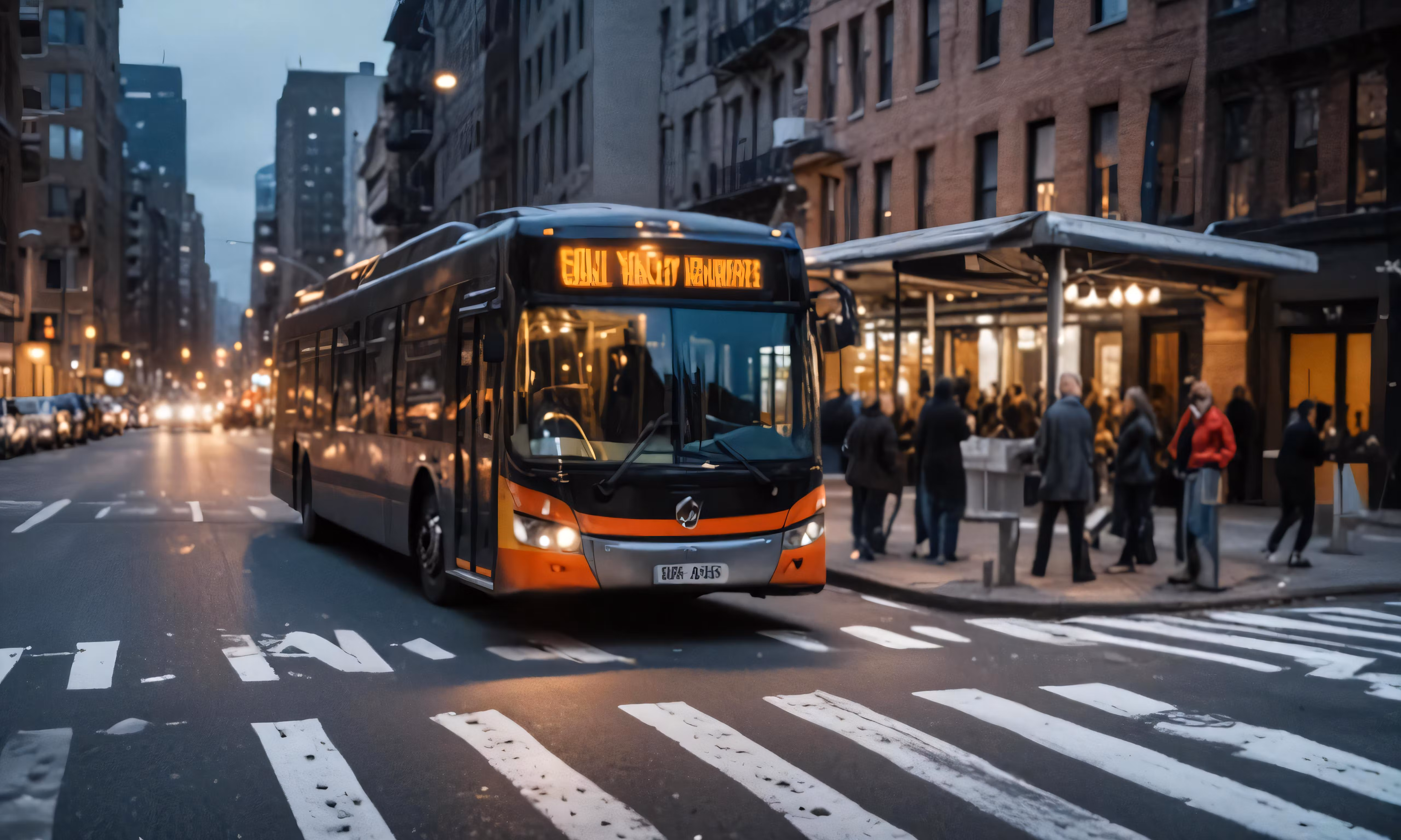High resolution picture, free to use, a bus is coming down the street at night