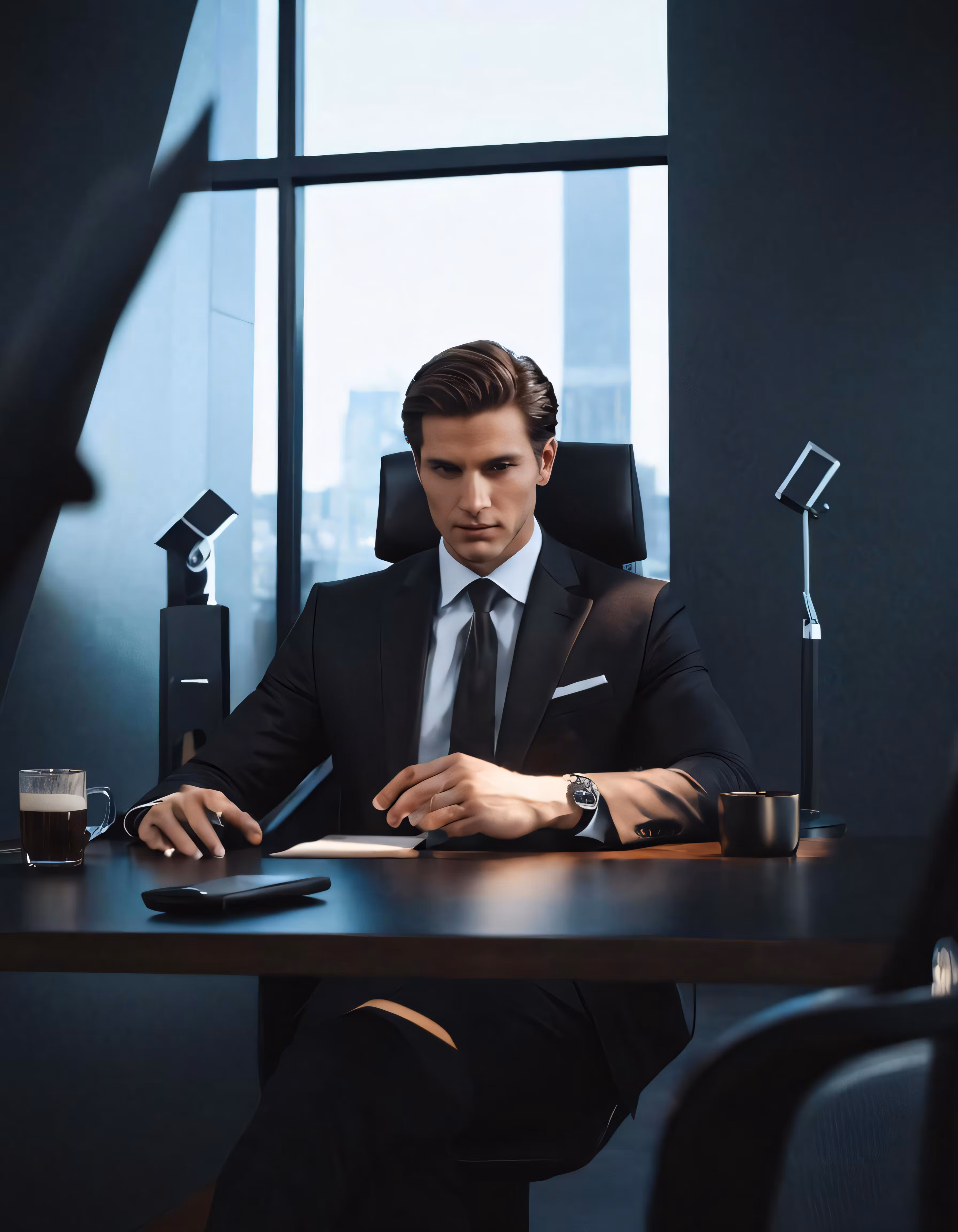 High resolution picture, free to use, a businessman sitting at his office desk doing paperwork