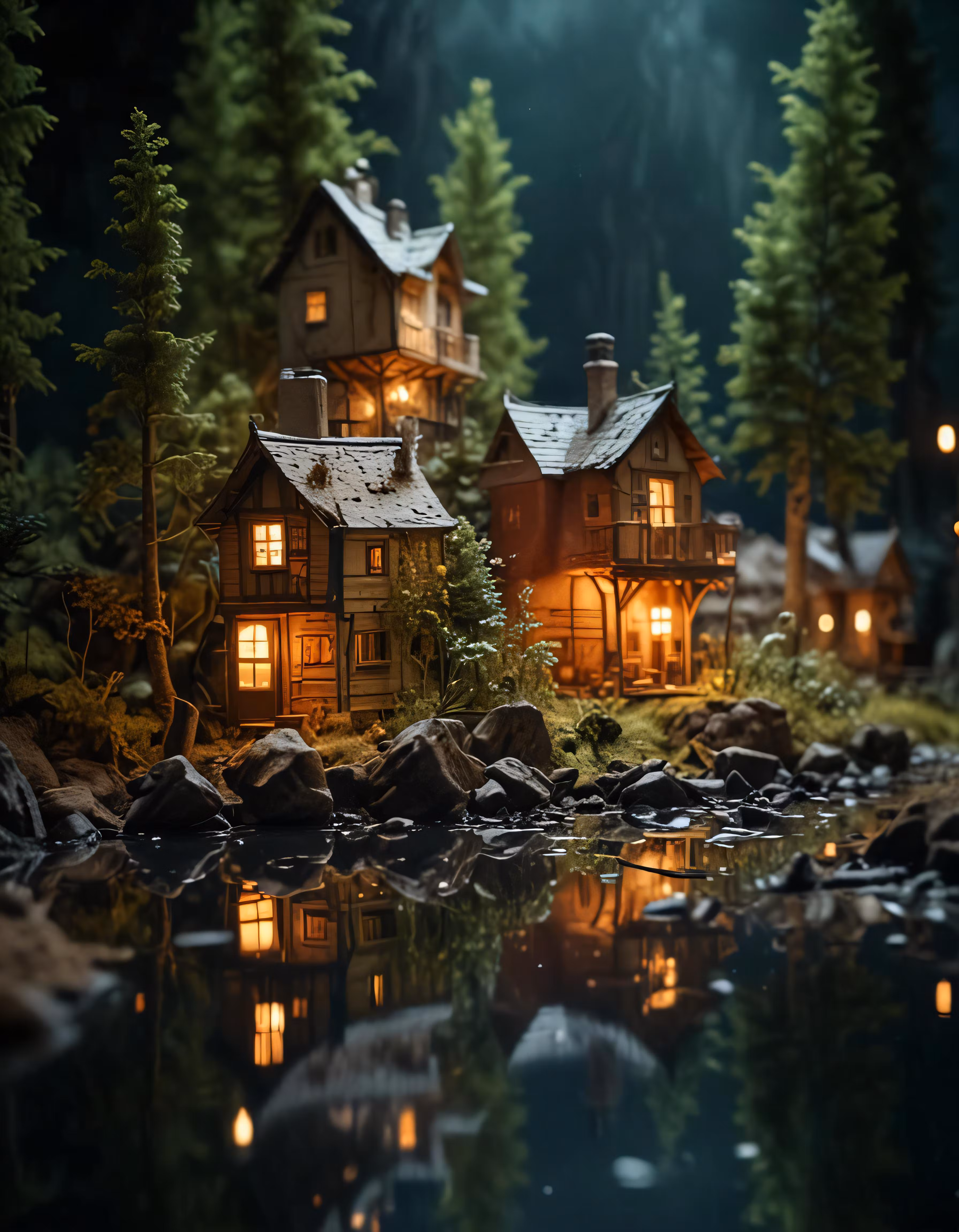 High resolution picture, free to use, a cabin sitting by a pond in the woods