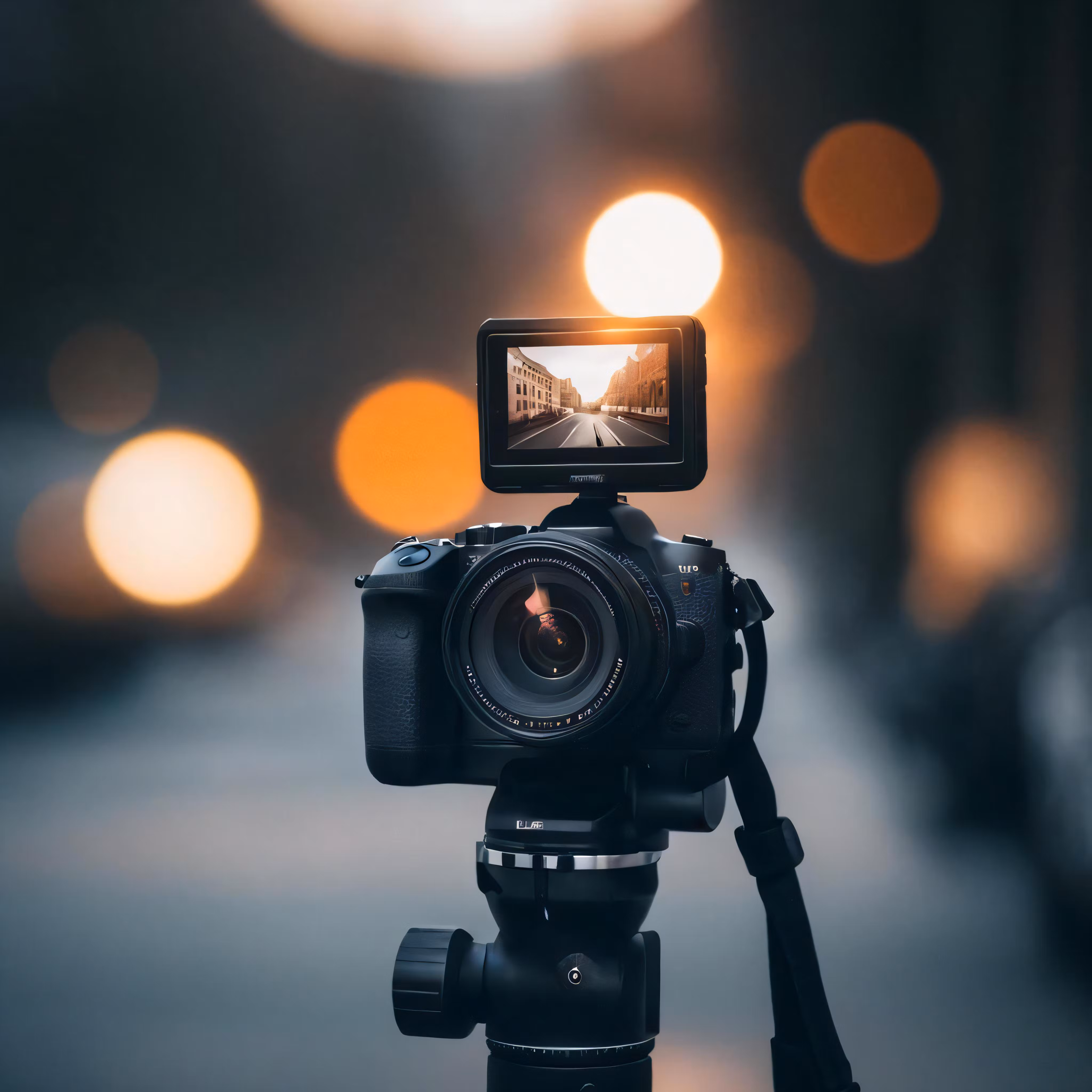 High resolution picture, free to use, a camera attached to a tripod on a street