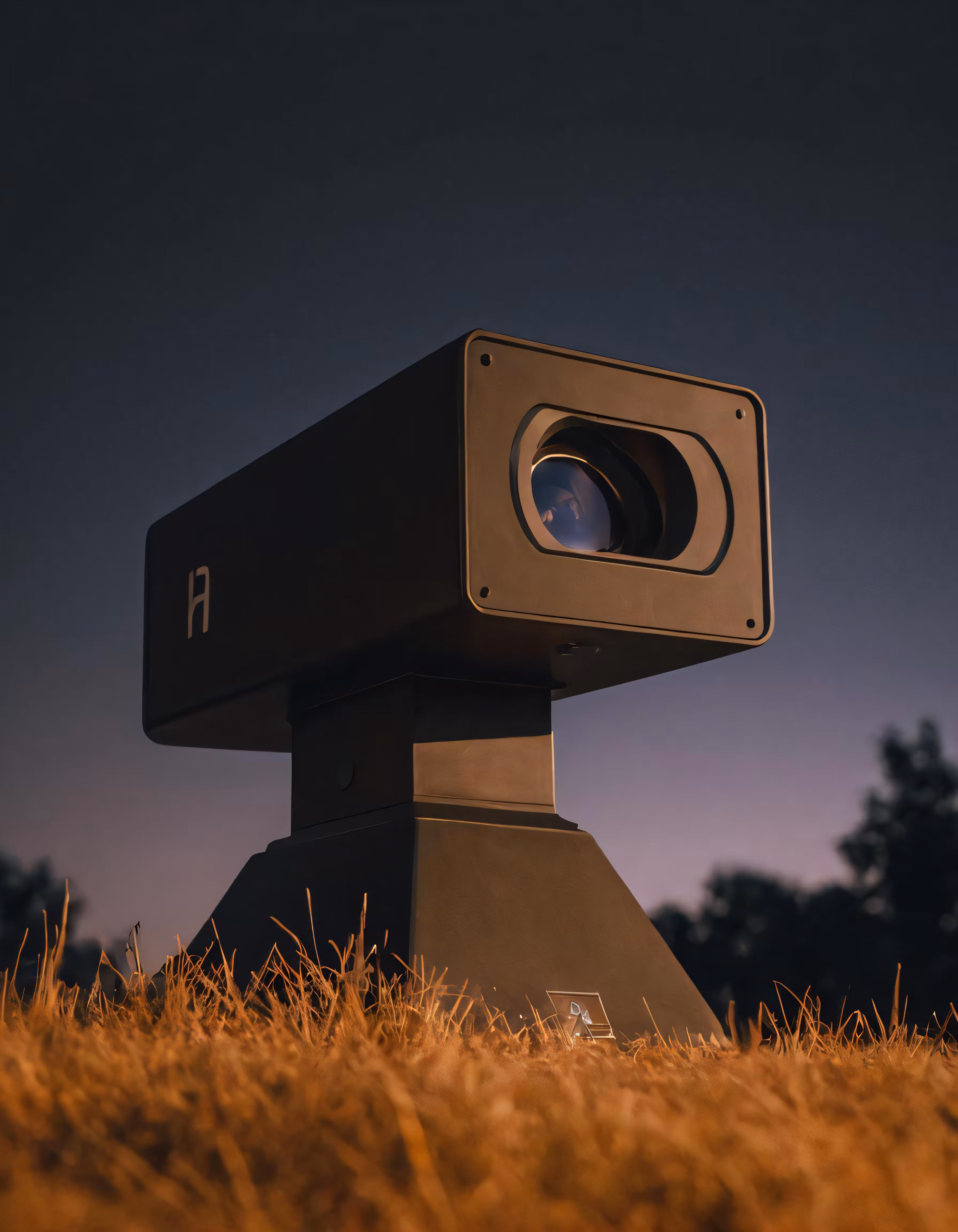High resolution picture, free to use, a camera in the middle of a grassy field