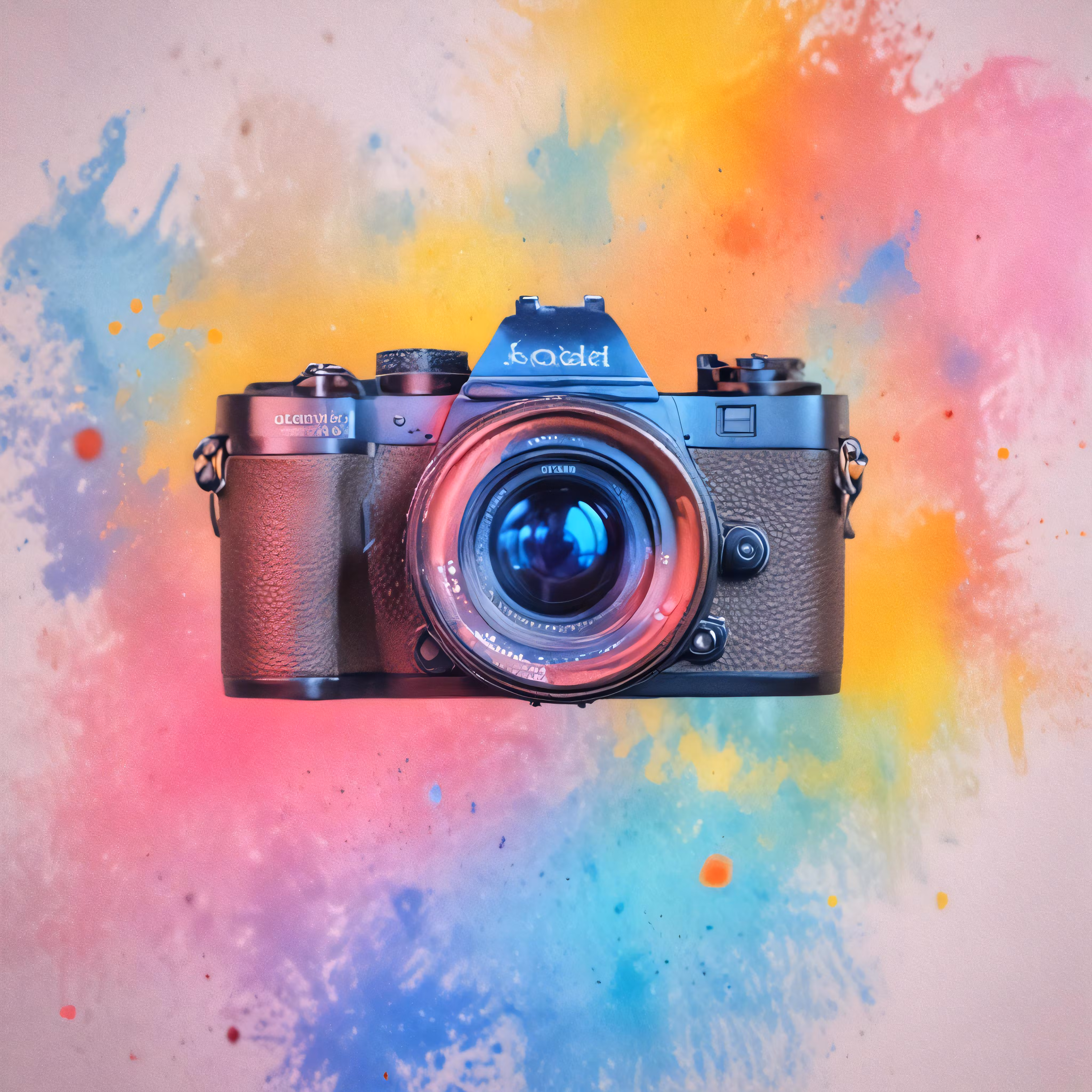 High resolution picture, free to use, a camera on a colorful background with a spray painted backdrop